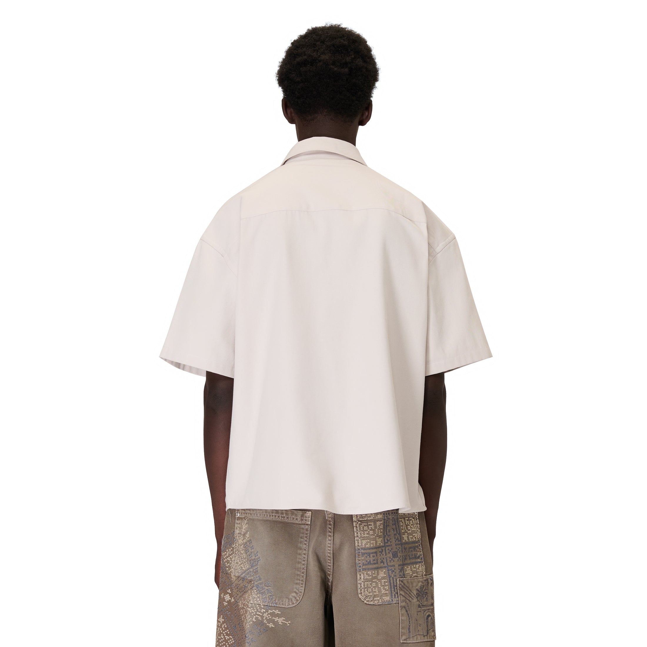 gabardine fabric / 100% cotton / embroidery on front / custom buttons / curved hem / relaxed fit / fits true to size