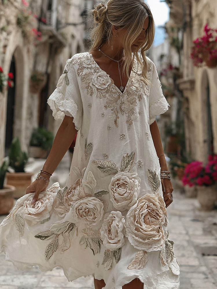 Women's Vintage Roses Art Print Flowy Linen Blend Casual Midi Dress 7c1f$5.90 USDDescribe your product