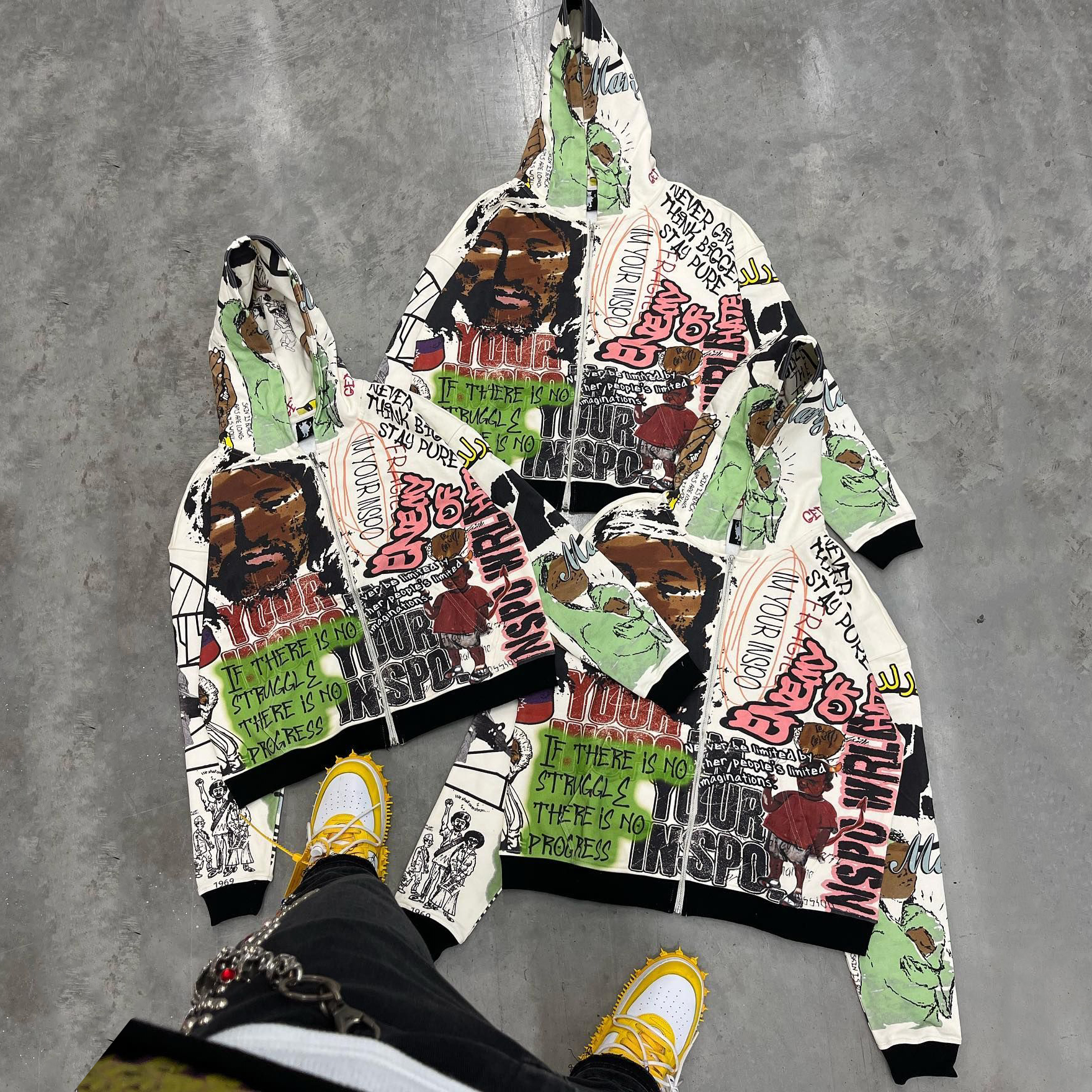 Personalized Multi-element Print Long Sleeve Zipper Hoodies