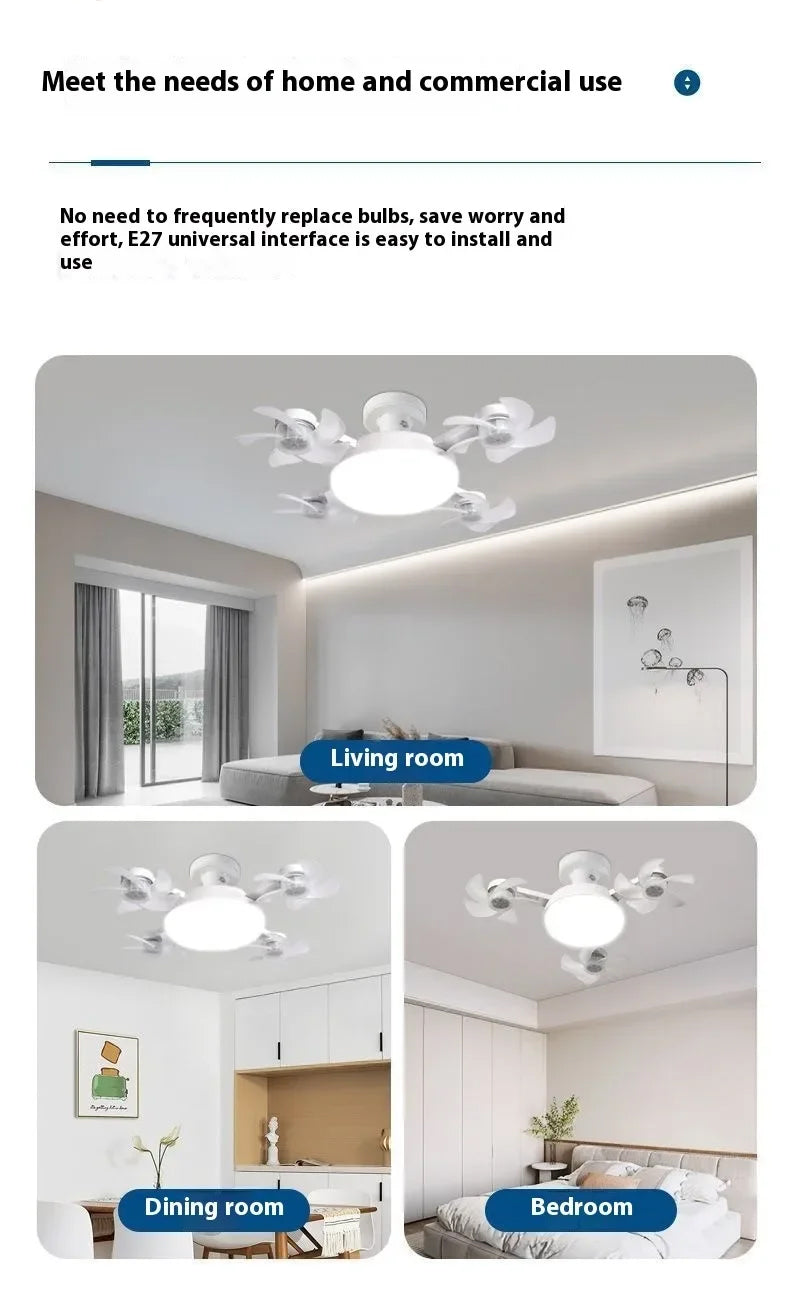 Ideal for: Small spaces needing combined lighting + airflow.Low noise& energy-saving!