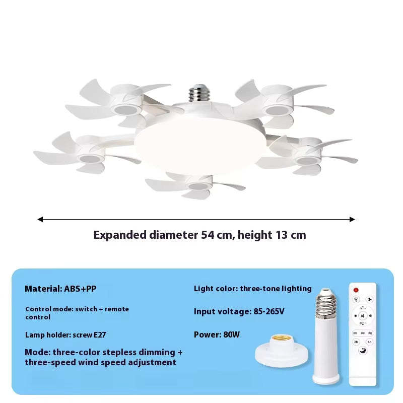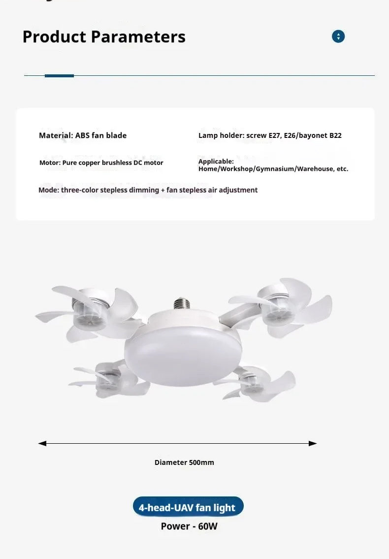 Drone Fan Integrated Light with E27 Screw Creative 3/4/5 Head Remote-Controlled