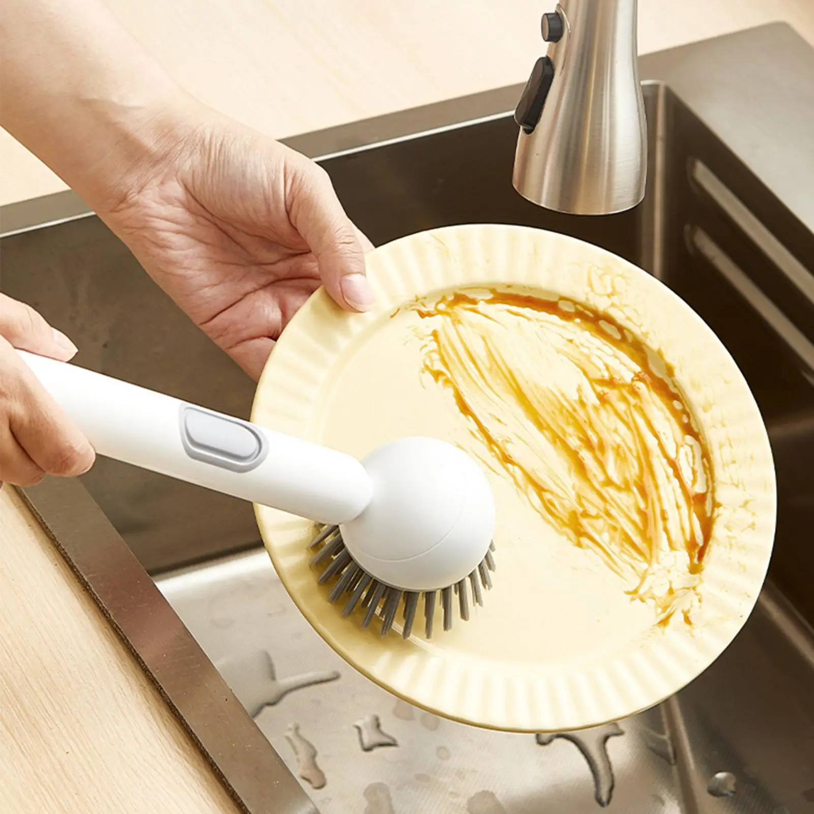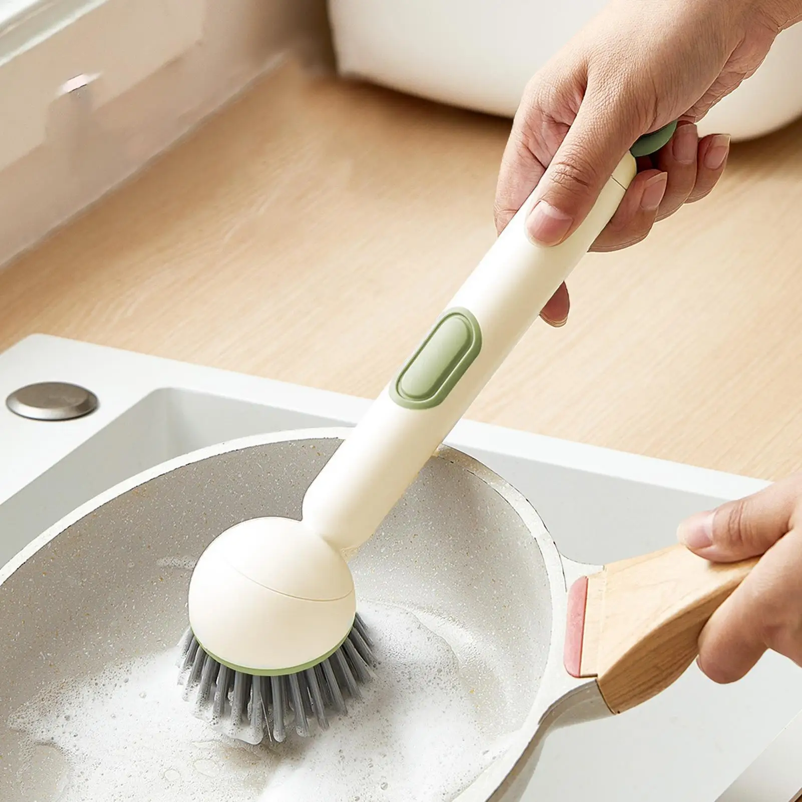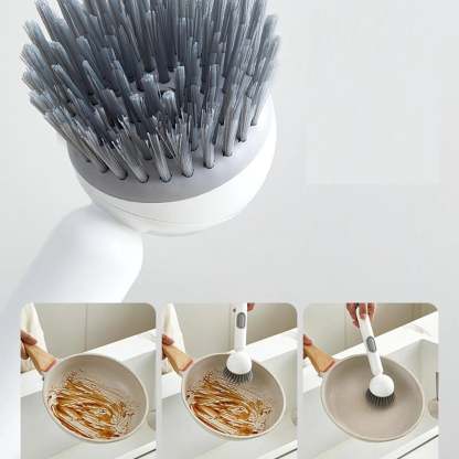Long Handle Dish Brush with Soap Dispenser and Rotating Scrubber Head