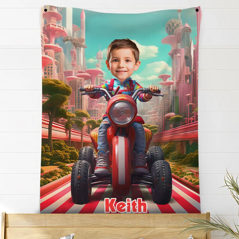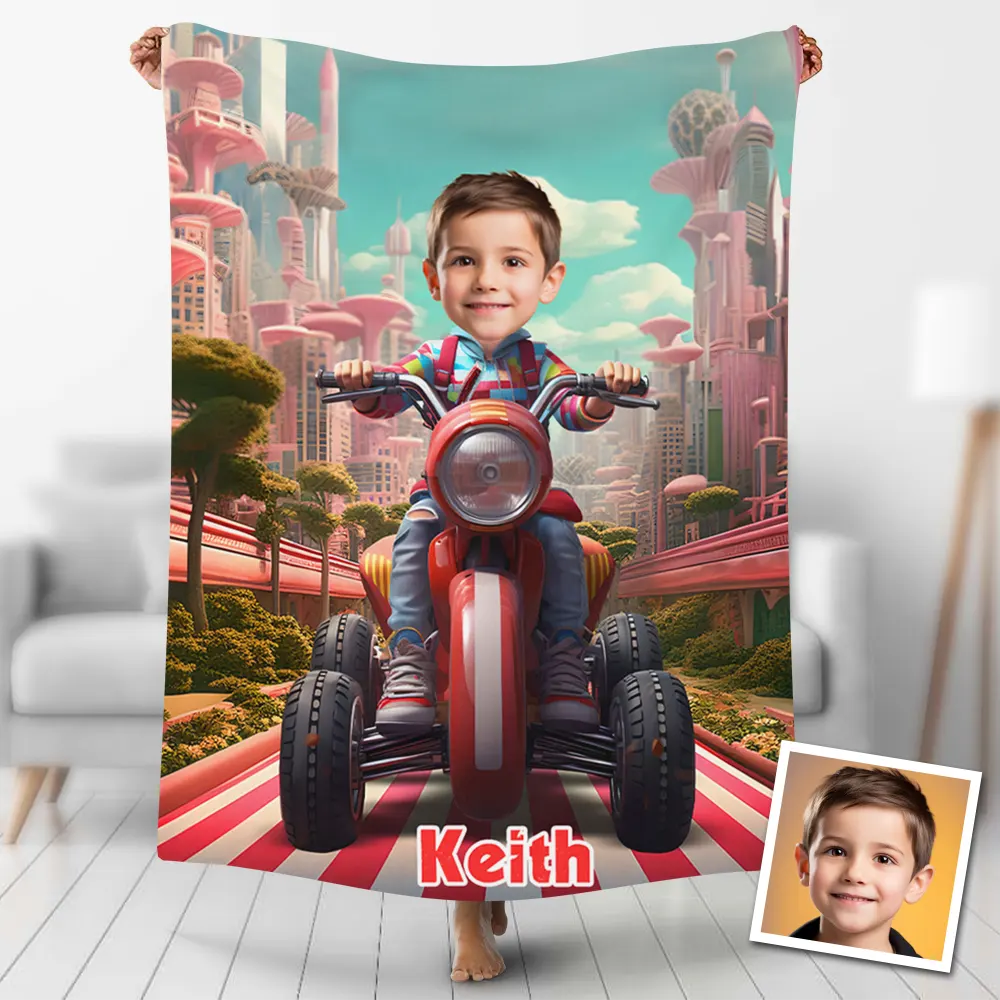 Custom Blankets Personalized Boy Riding Bike Boy Riding BikerBlanket