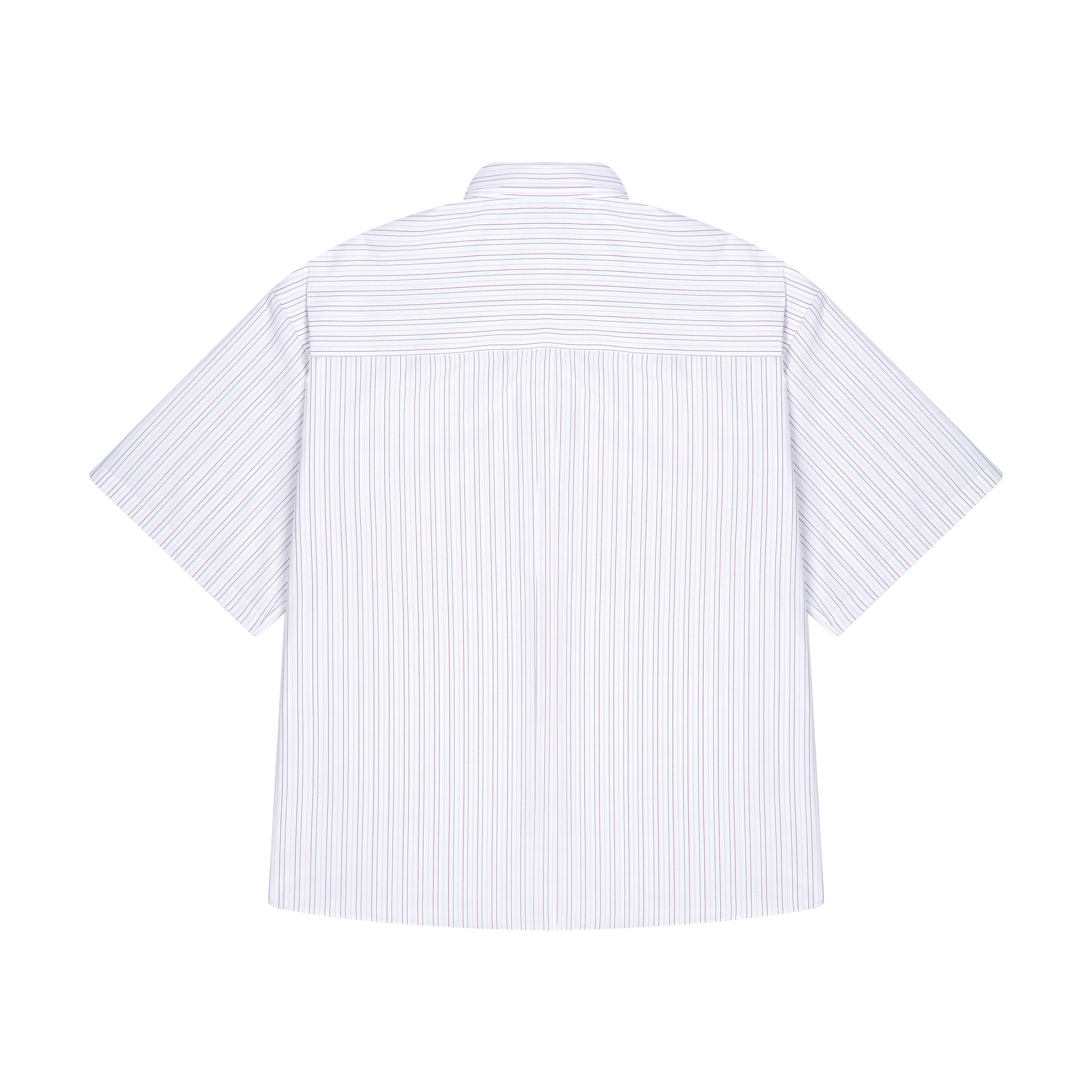 poplin fabric / 55% cotton 45% polyester / striped / embroidery on front / custom buttons / curved hem / relaxed fit / fits true to size