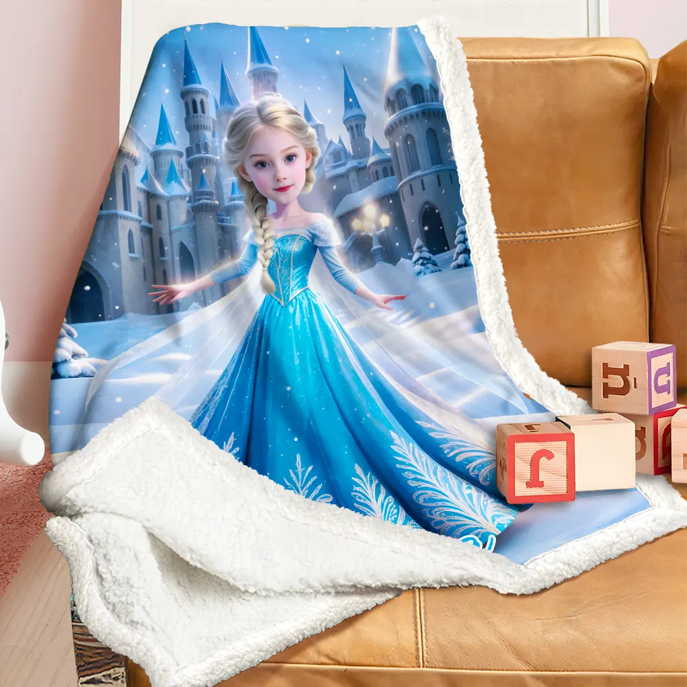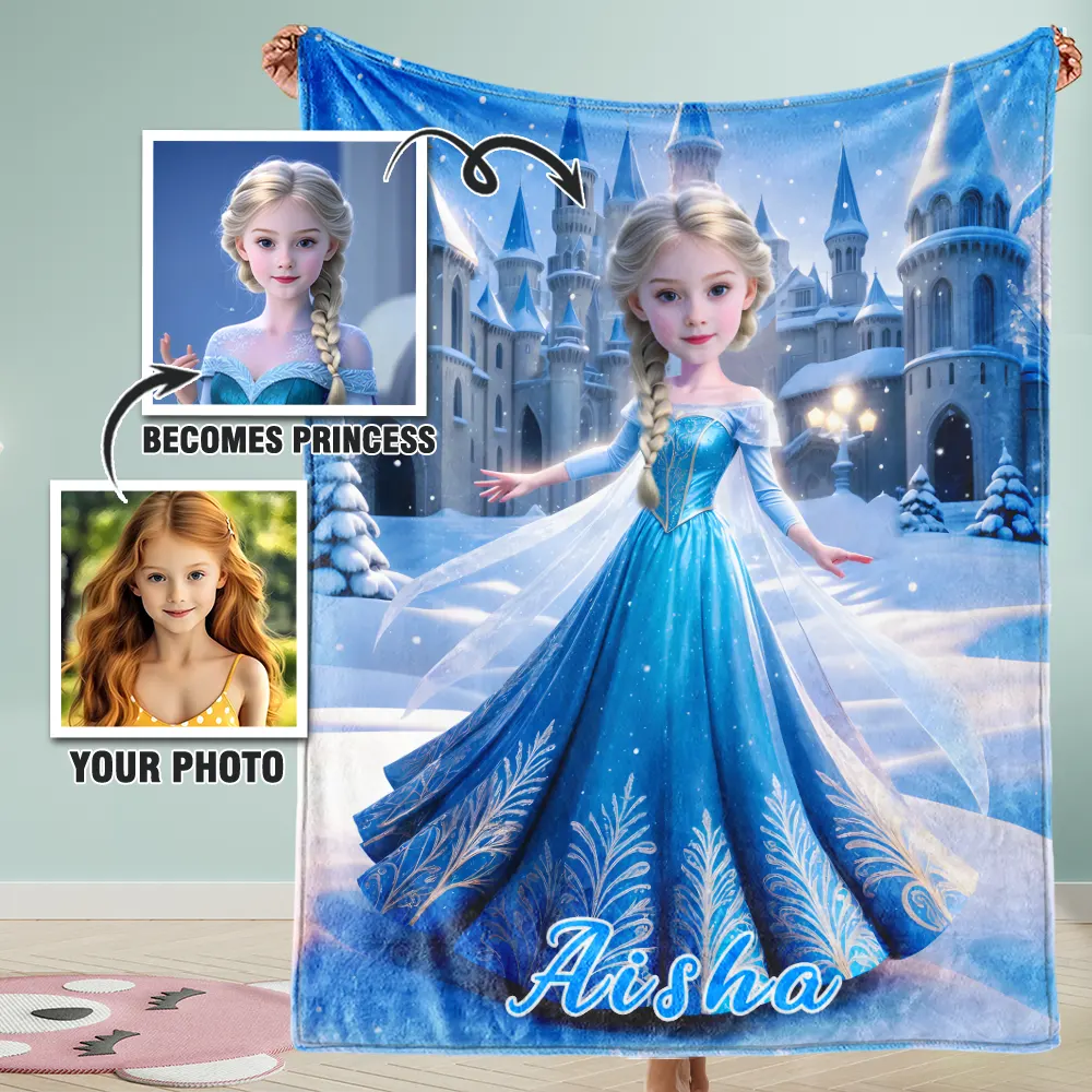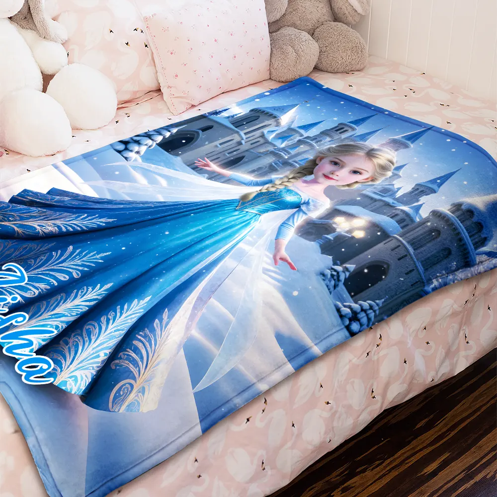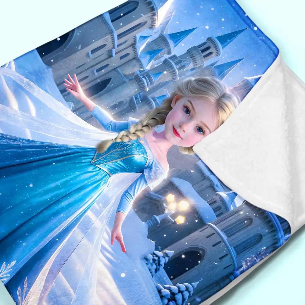 Custom Photo Blankets AI-Powered 3D Princess With Castle Personalized Ice Queen With Your Photo