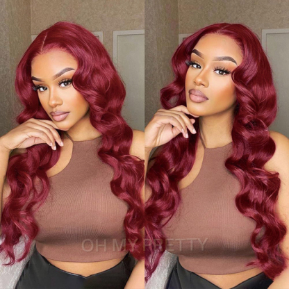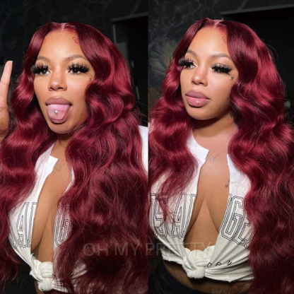 OhMyPretty Wear Go Glueless 99J Color Body Wave 7x5 Lace Wig With Pre-plucked Hairline Tiny Knots Pre-Cut Zig Zag Lace