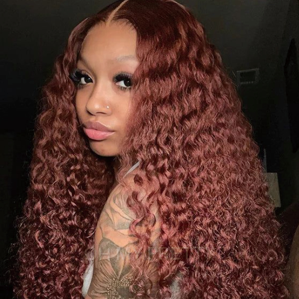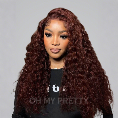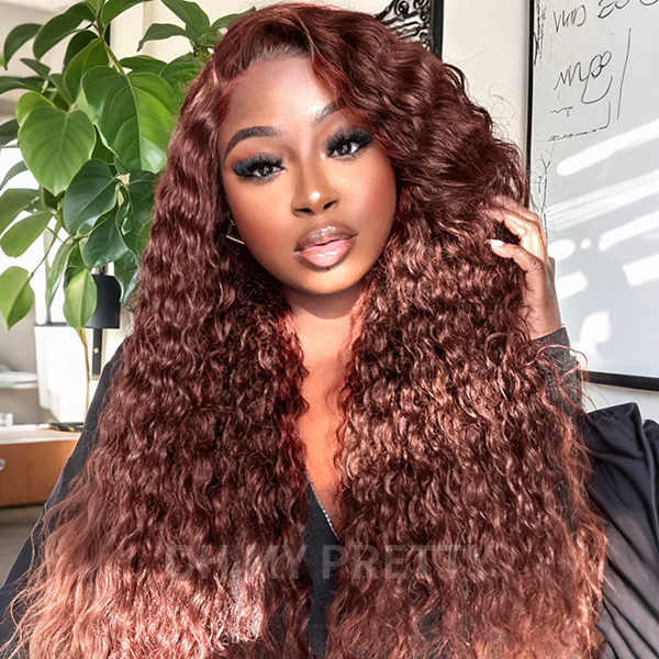 OhMyPretty Wear Go Glueless Reddish Brown Color Water Wave 7x5 Lace Wig With Pre-plucked Hairline