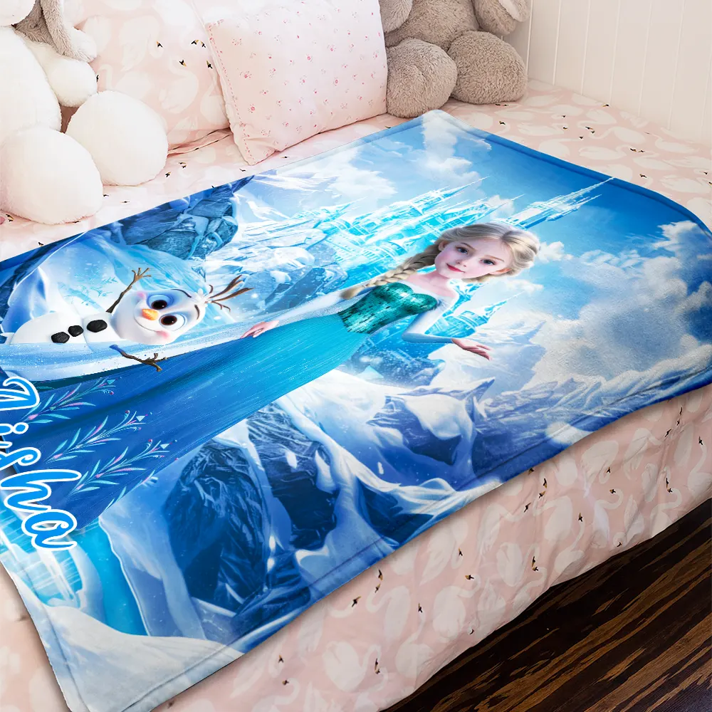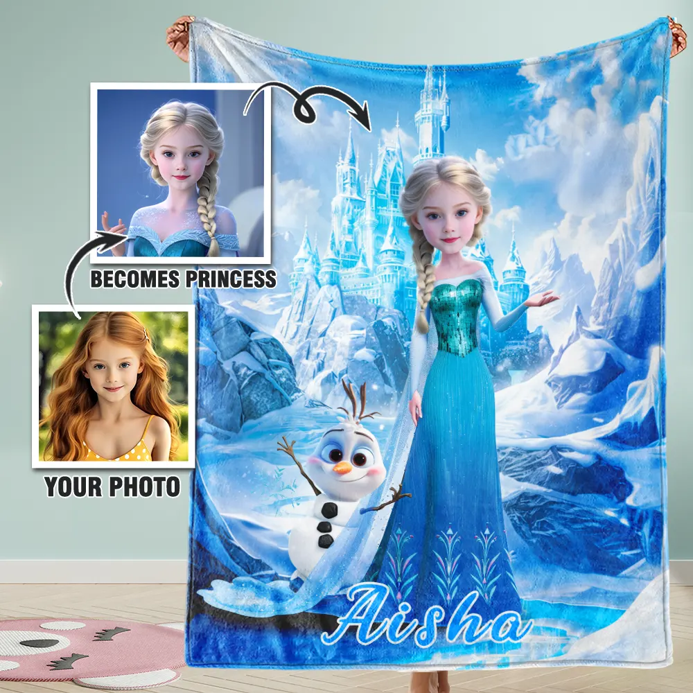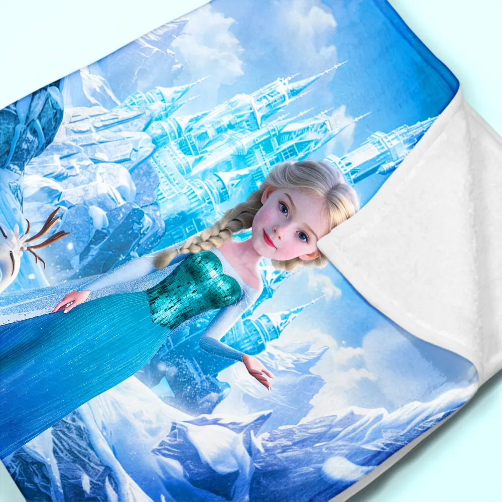 Custom Photo Blankets AI-Powered 3D Princess With Snow Man Personalized Ice Queen With Your Photo