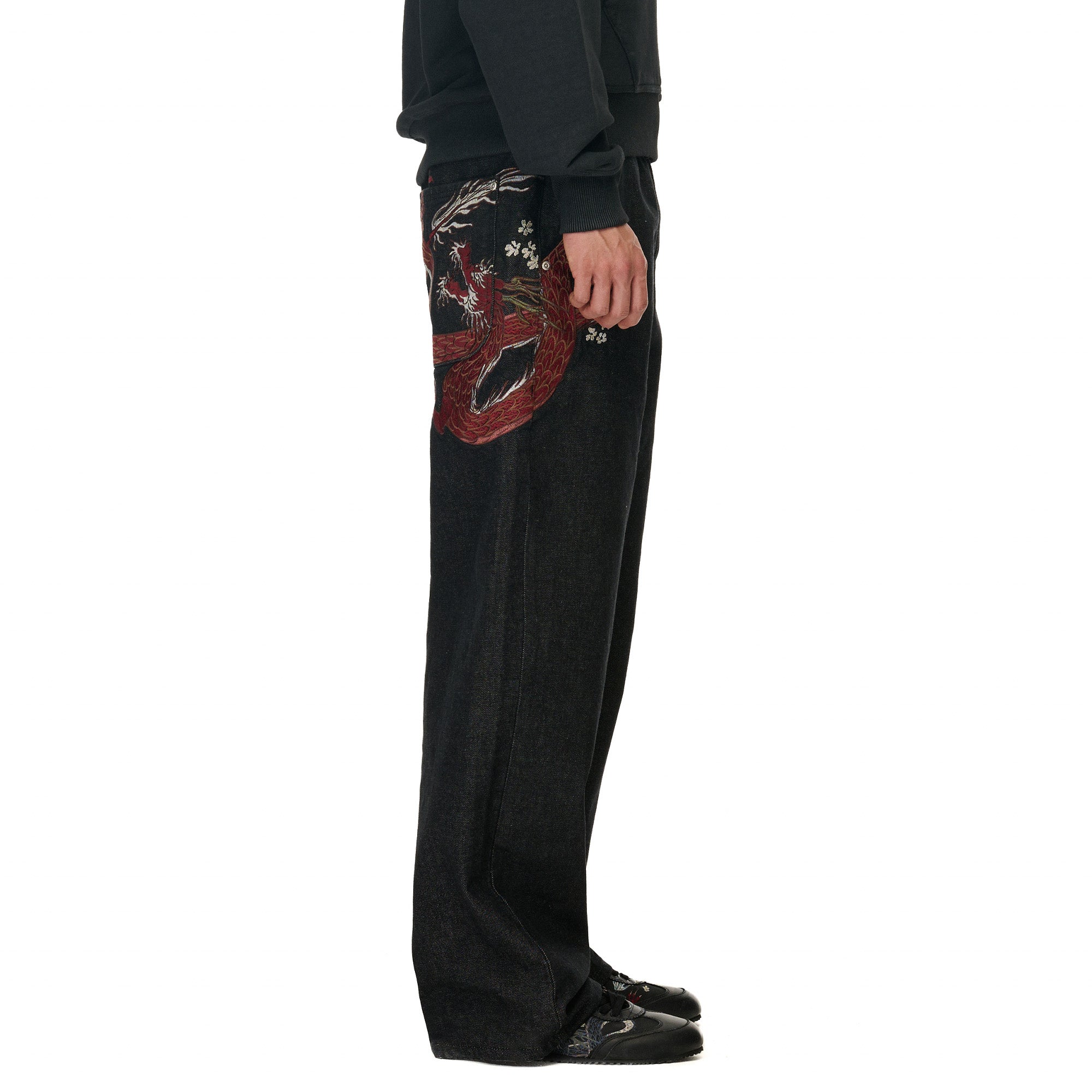 14,5oz raw denim / 100% cotton / embroidery on front and back / embroidered leather patch / wash inside out / straight fit / fits true to size