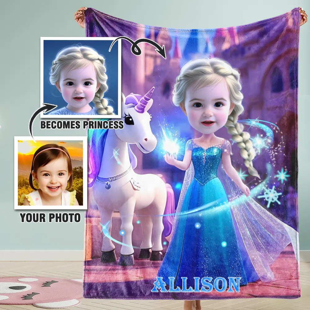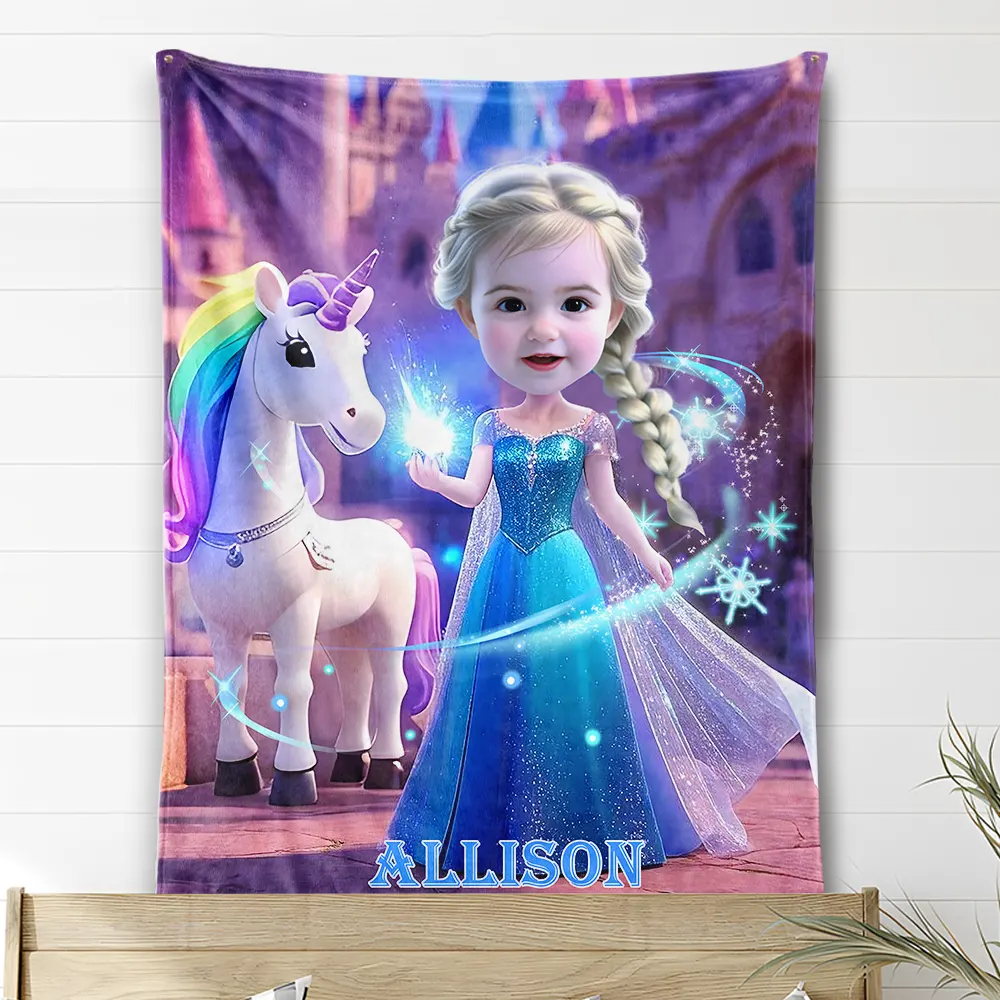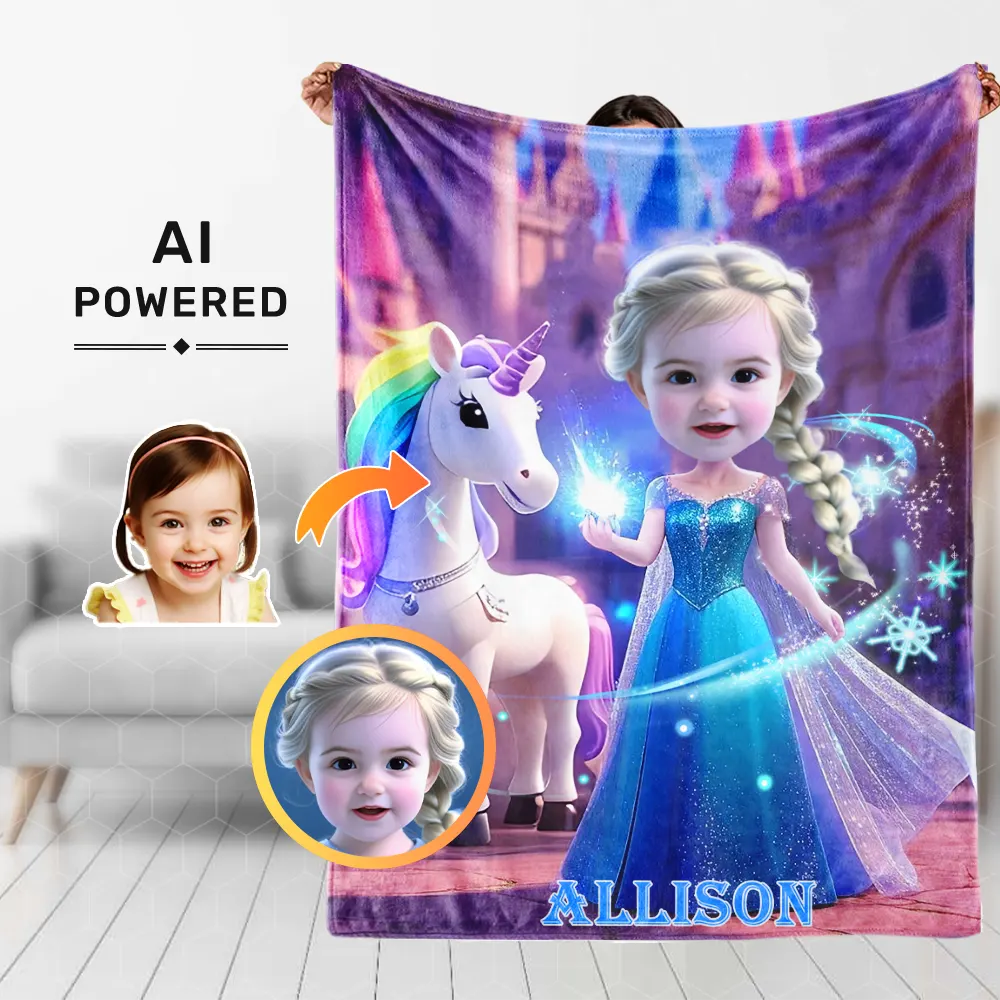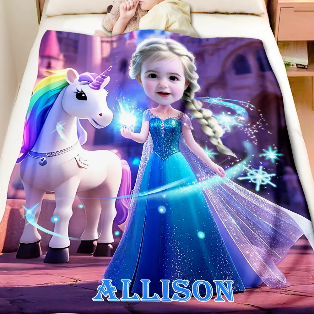 Custom Photo Blankets AI-Powered 3D Princess With Horse Personalized Baby Ice Queen With Your Photo