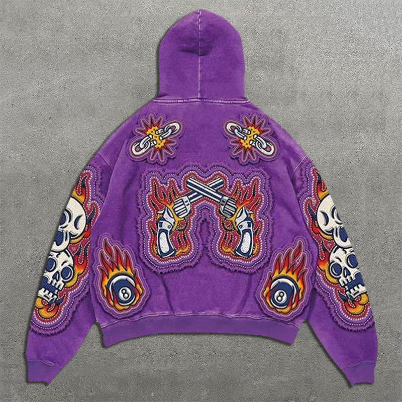 Playing Cards Faux Decal Print Long Sleeve Hoodies