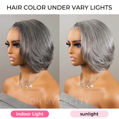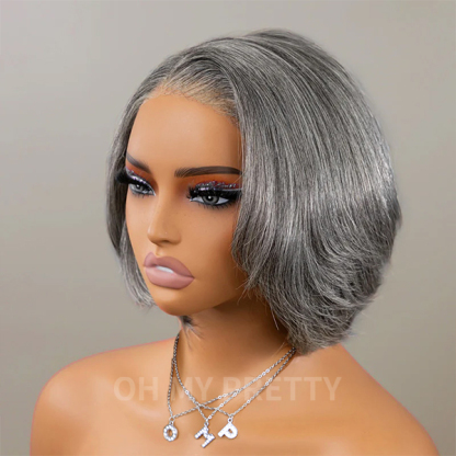 Boss Vibe Salt and Pepper Layered Bob 7x5 Lace Wear Go Glueless Pre-Cut Lace Grey Wig