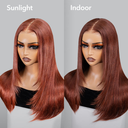 OhMyPretty Glueless Layered Cut Reddish Brown Straight Wear Go 7x5 Lace Wigs Pre-Plucked Hairline Pre-Cut Lace Tiny Knots
