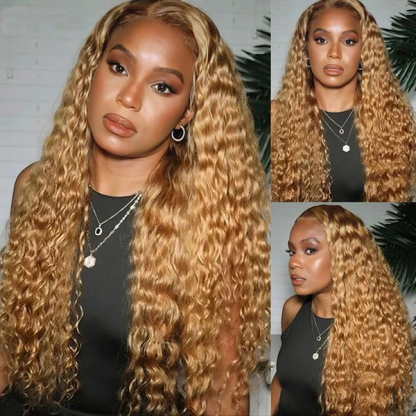 OhMyPretty Wear Go Glueless Honey Blonde #27 Color Water Wave 6x4 Lace Wig With Pre-plucked Hairline Secure 3D Dome Cap