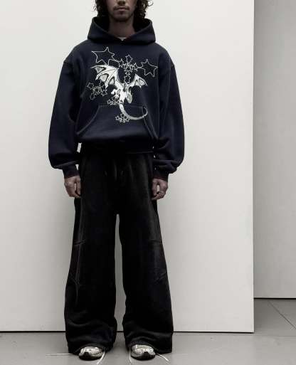 - 510 GSM- Exposed Loopback surface texture- French Terry cotton blend- Drop shoulder- Stitchless front pocket
