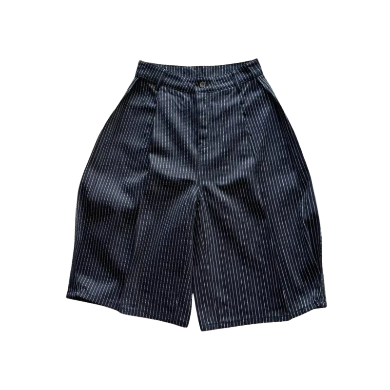 PLEATED PINSTRIPES SELVEDGE CAPRIS