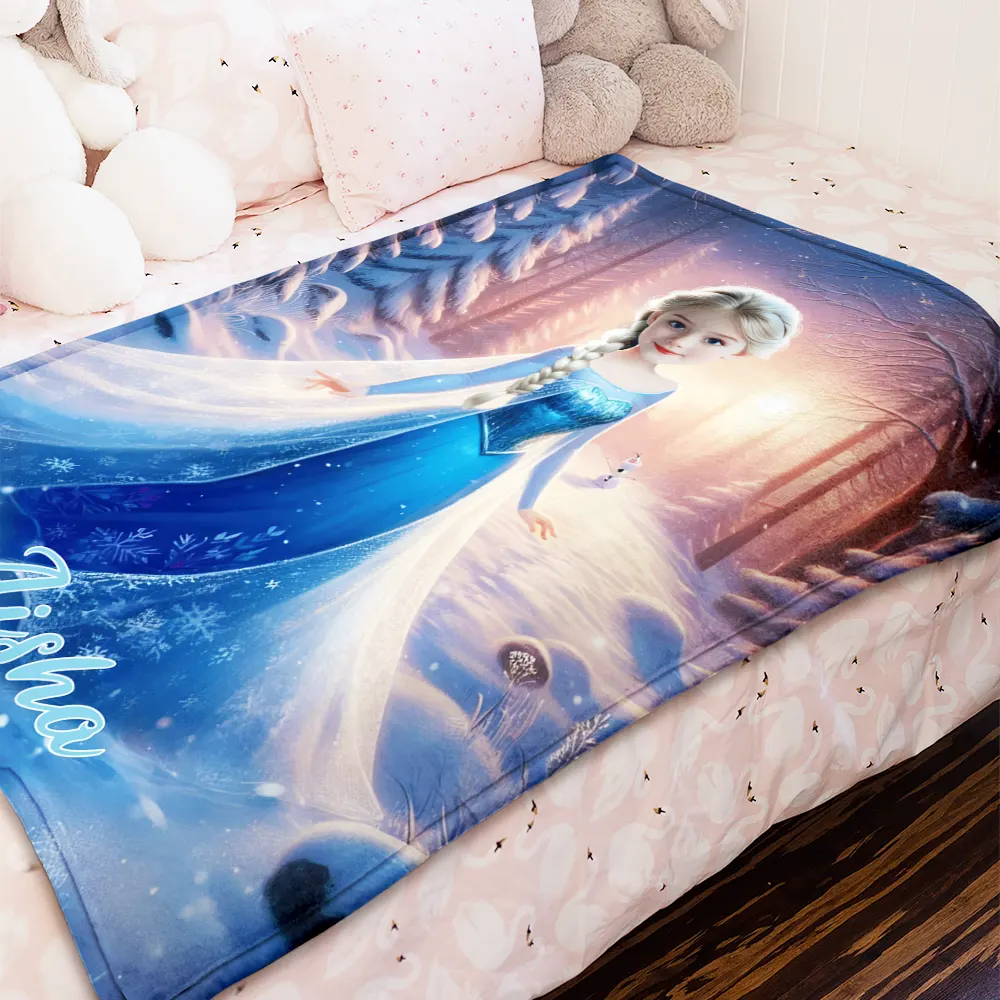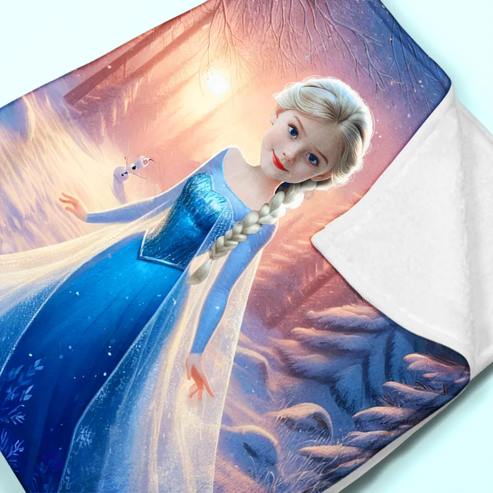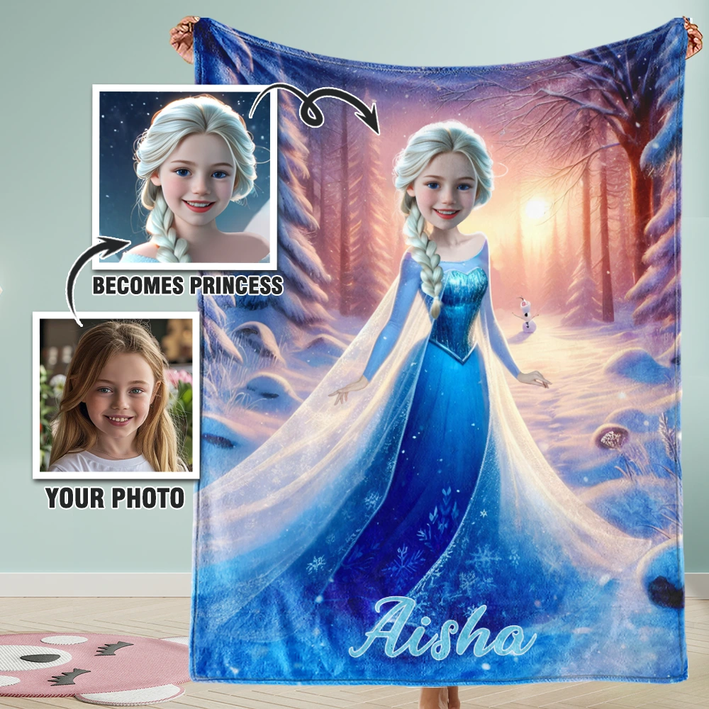 Custom Photo Blankets AI-Powered 3D Princess Winter Snow Personalized Princess with Your Photo