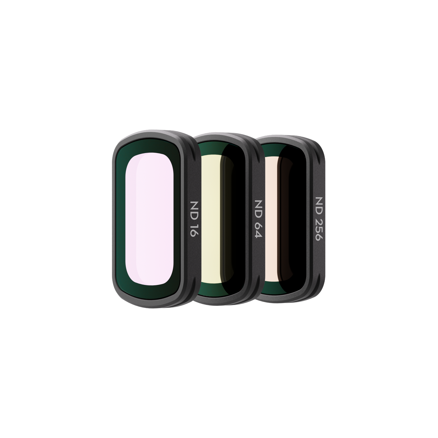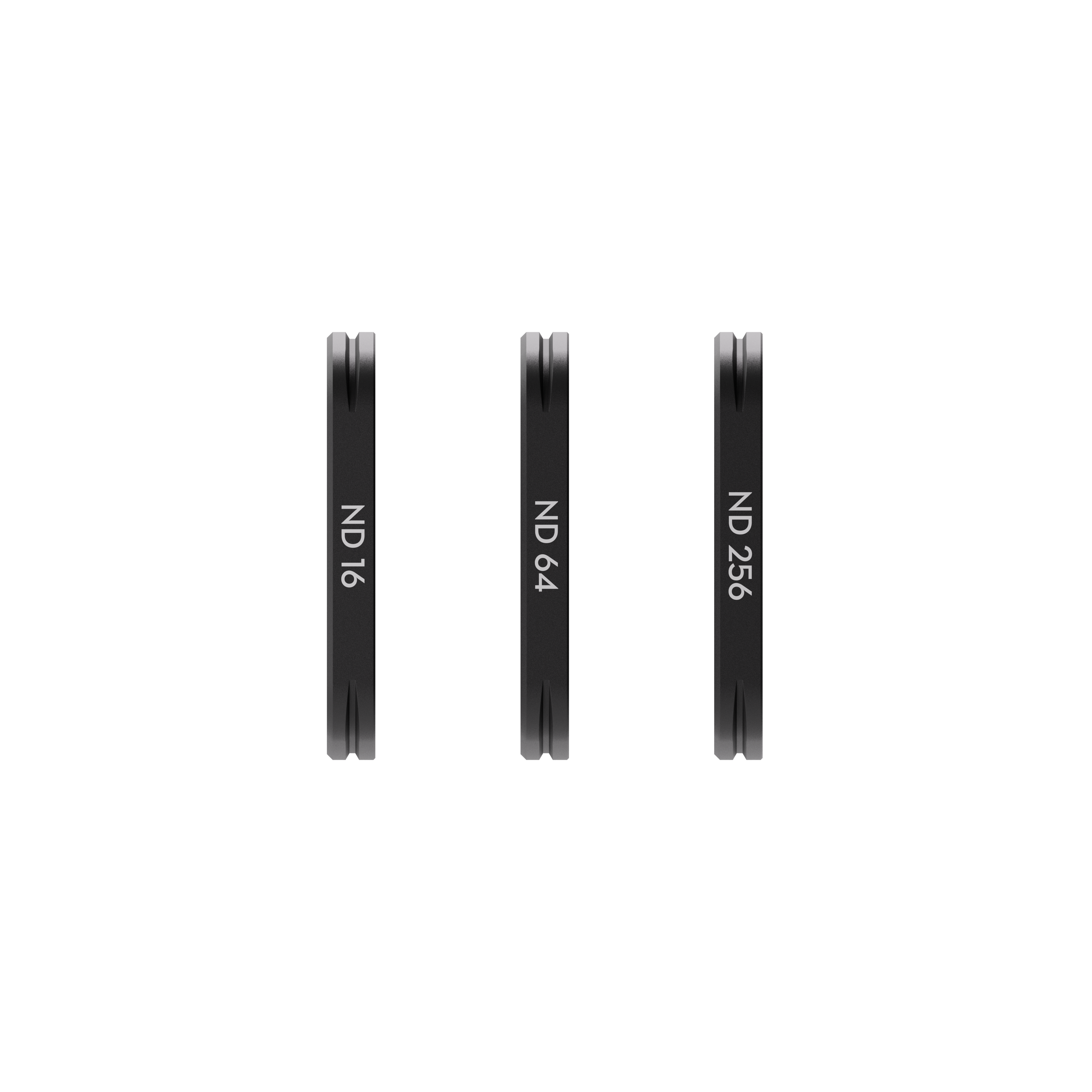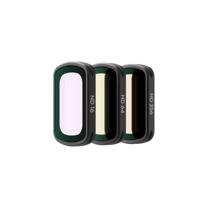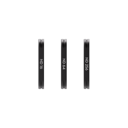 The Magnetic ND Filters Set includes ND16, ND64, and ND256 filters. A magnetic design facilitates easy attachment and detachment.