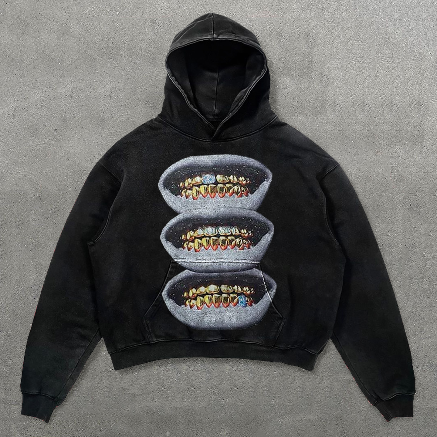 Gold Teeth Print Long Sleeve Hoodies