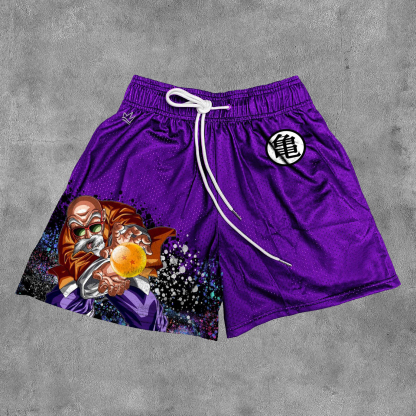 Casual Anime Print Mesh Pocket Shorts