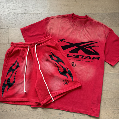 Casual Street Retro T-shirt Shorts Two-Piece Set