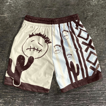 Character Plaid Print Mesh Shorts