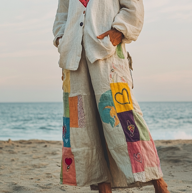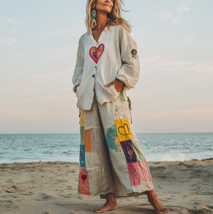 Comfort Vacation Oversized Linen Long Sleeve Shirt and Wide Leg Pants ab43