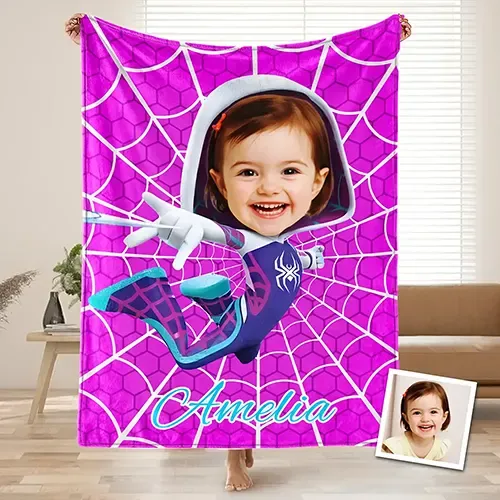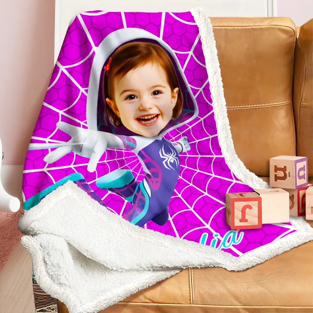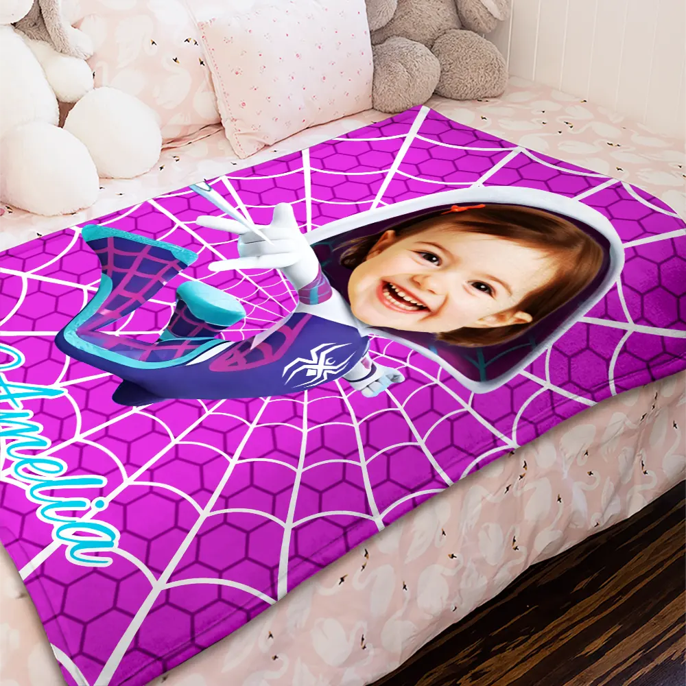 Custom Blanket Pink Theme Supergirl Motion Pose Spider Web Confidence Building Birthday Gift