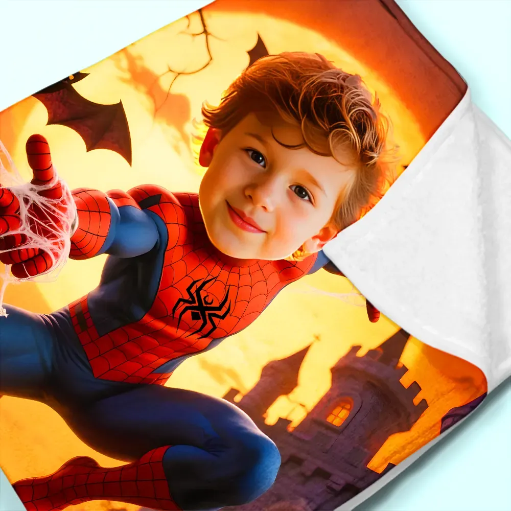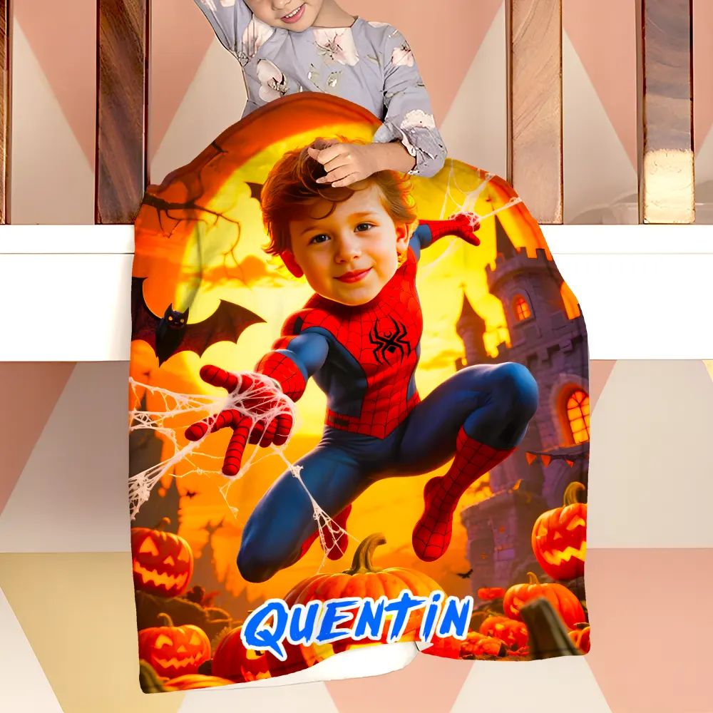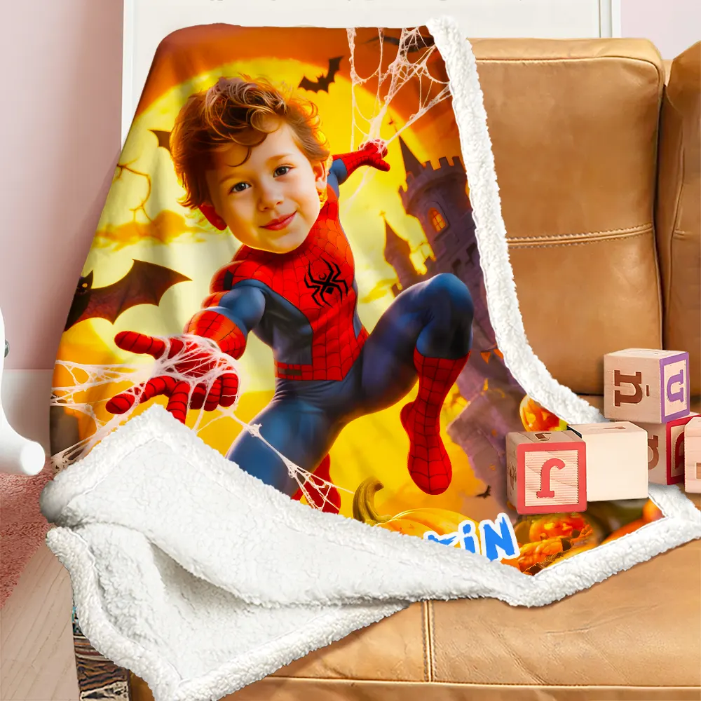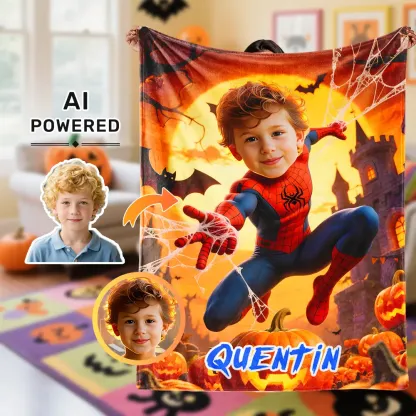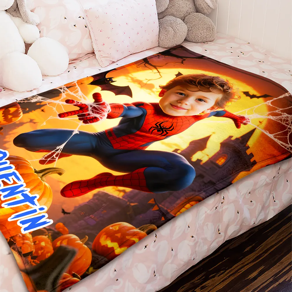 Custom Blanket Ai Powered Sunset Enchanted Castle Scary Pumpkin Super Hero Shooting Spider Silk Halloween Gift