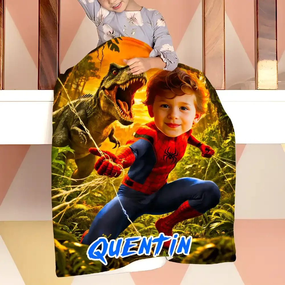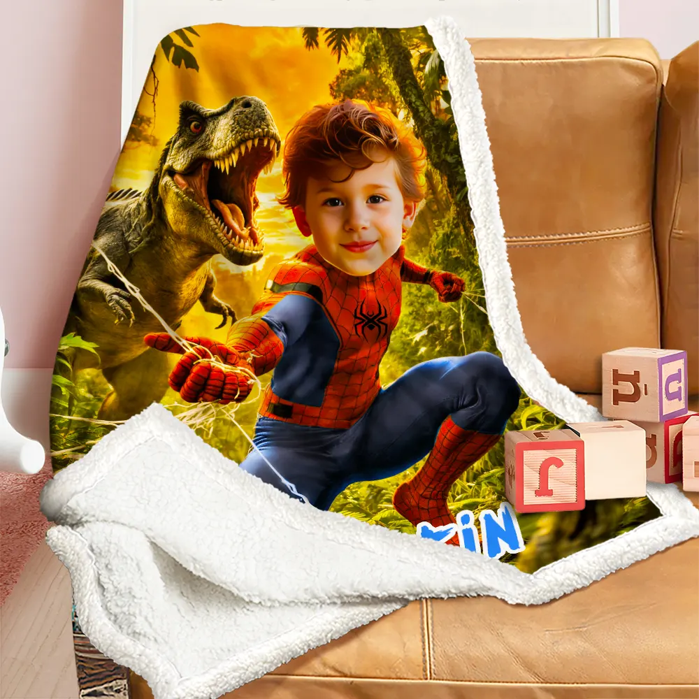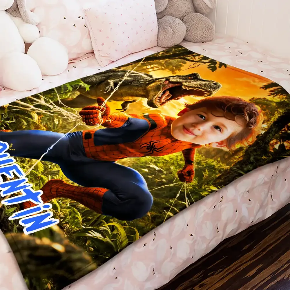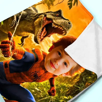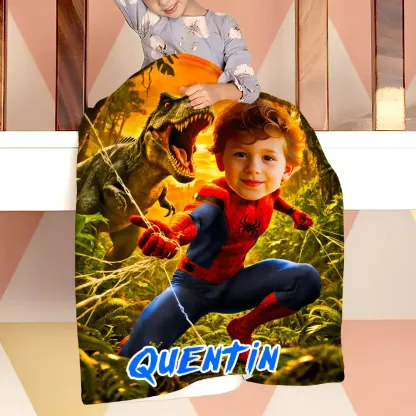 Custom Blanket AI Powered Superboy Dino Jungle Adventure Yellow & Green Family Activity Birthday Gift