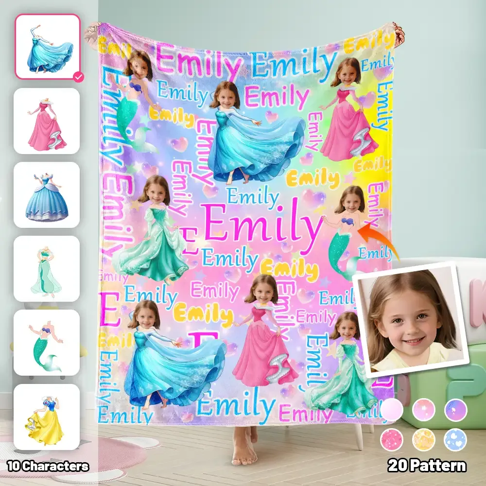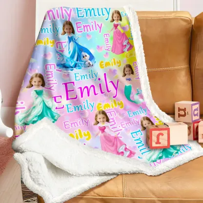 Custom Blanket Gradient Colorful Princess Fairy Tale Children's Day Gift for Girl