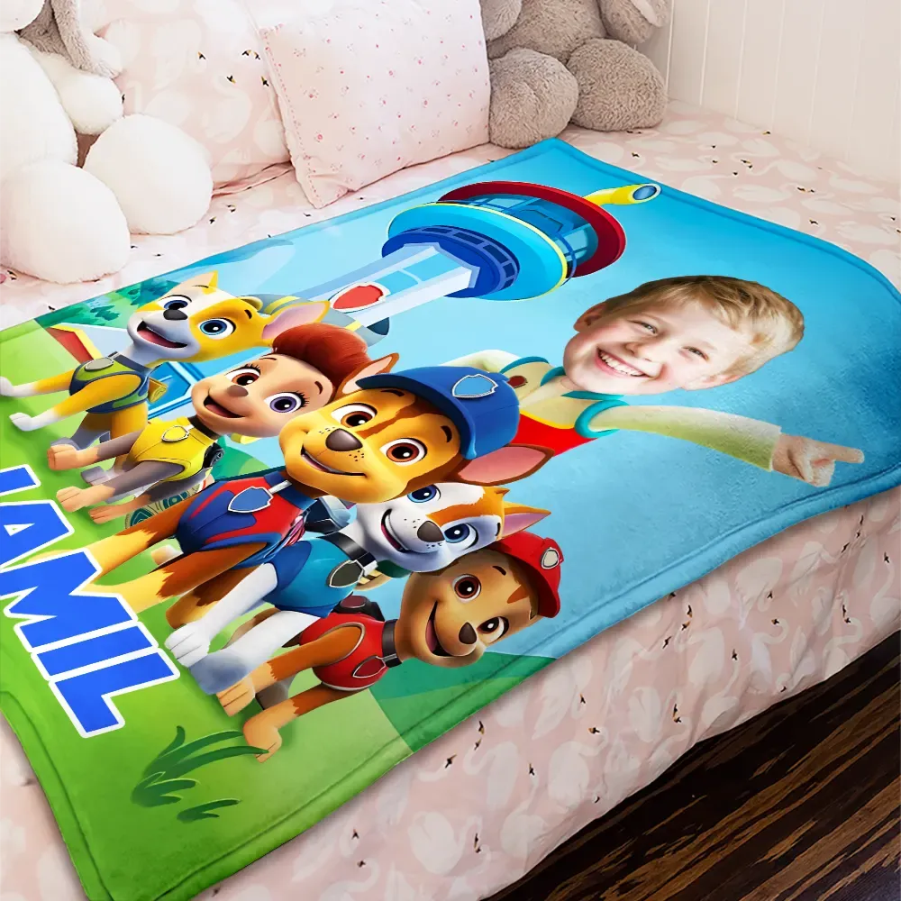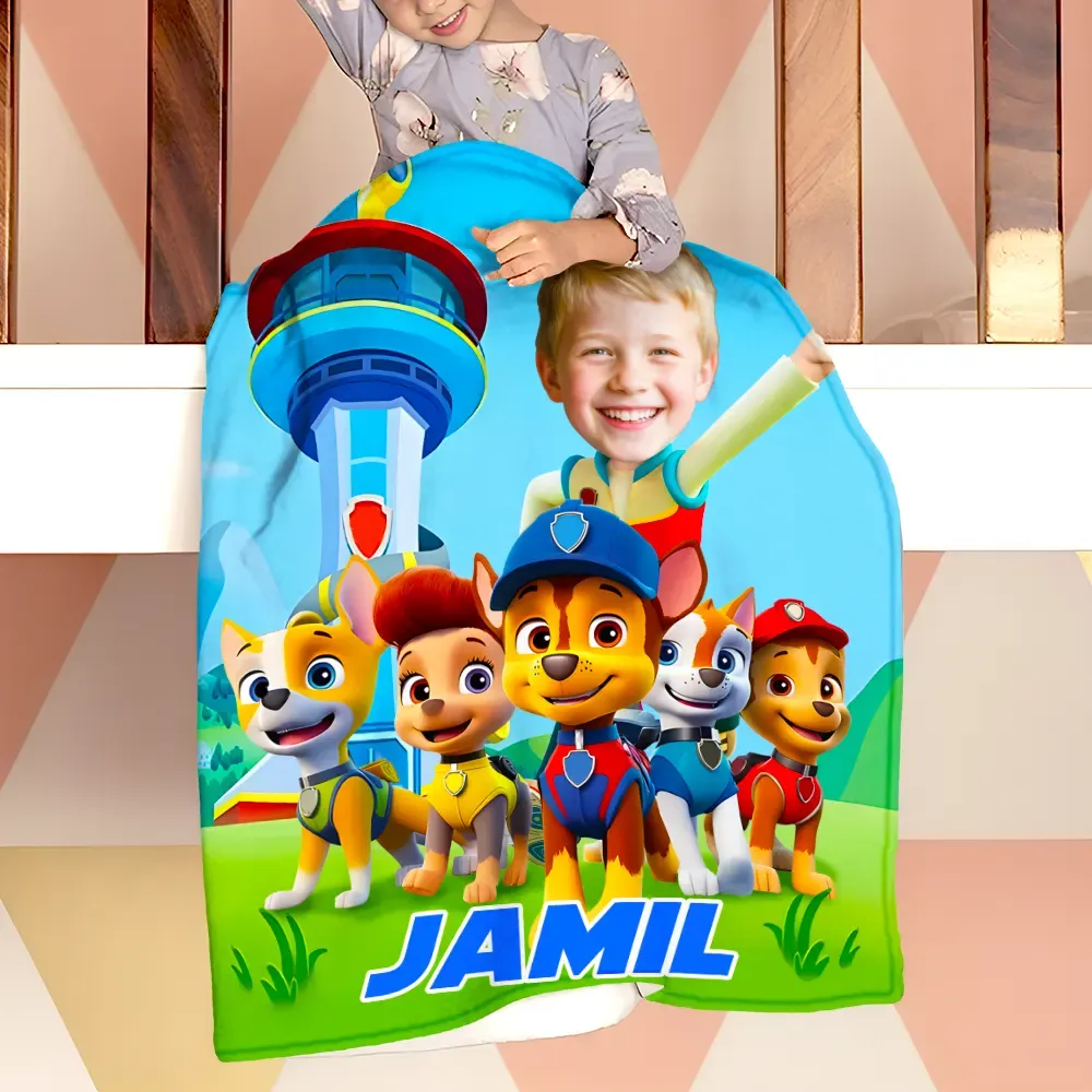 Custom Blanket Green & Blue Lighthouse Boy and Patrol Puppies Children's Day Gift