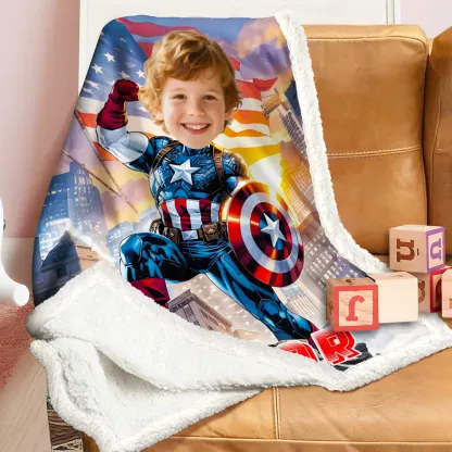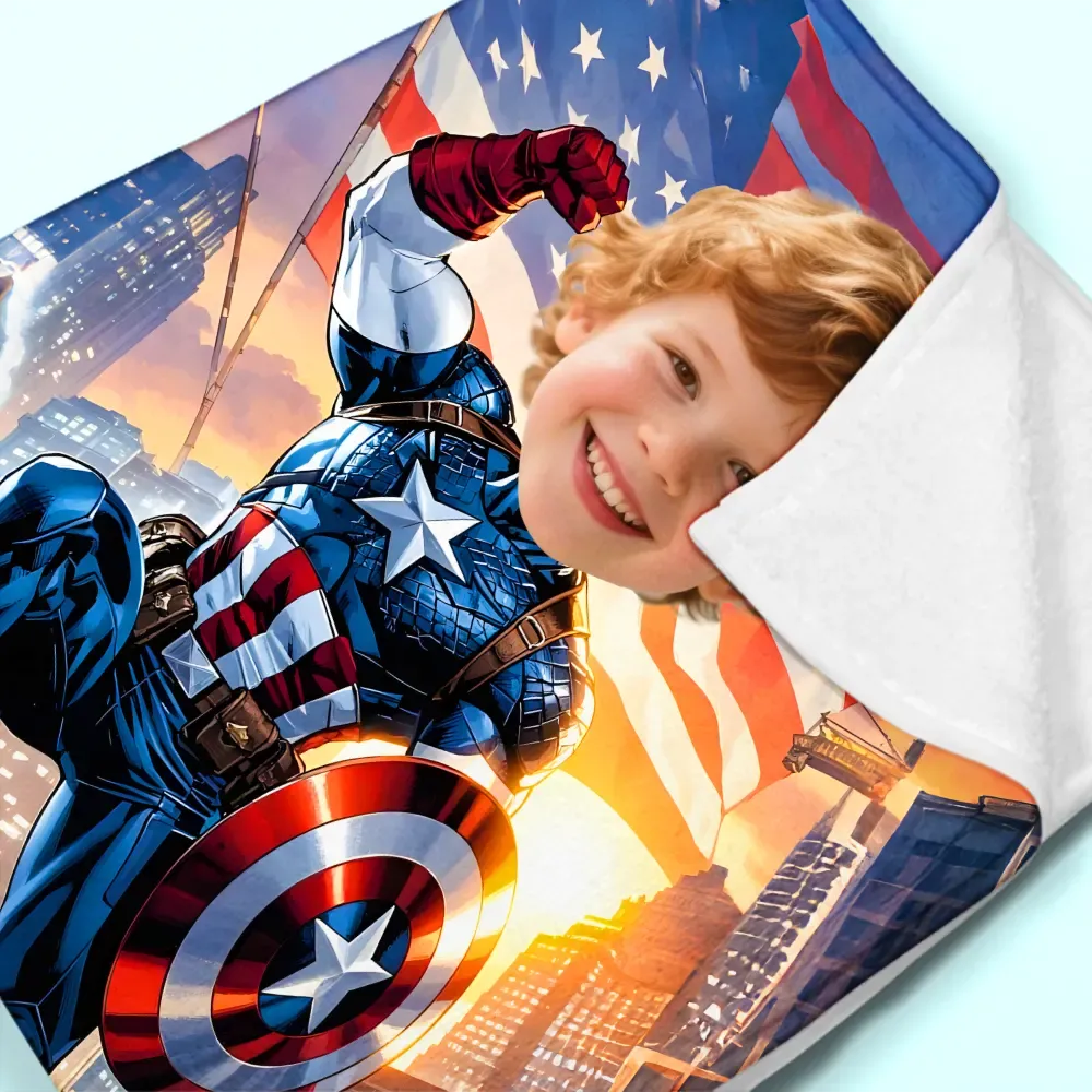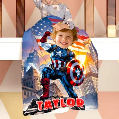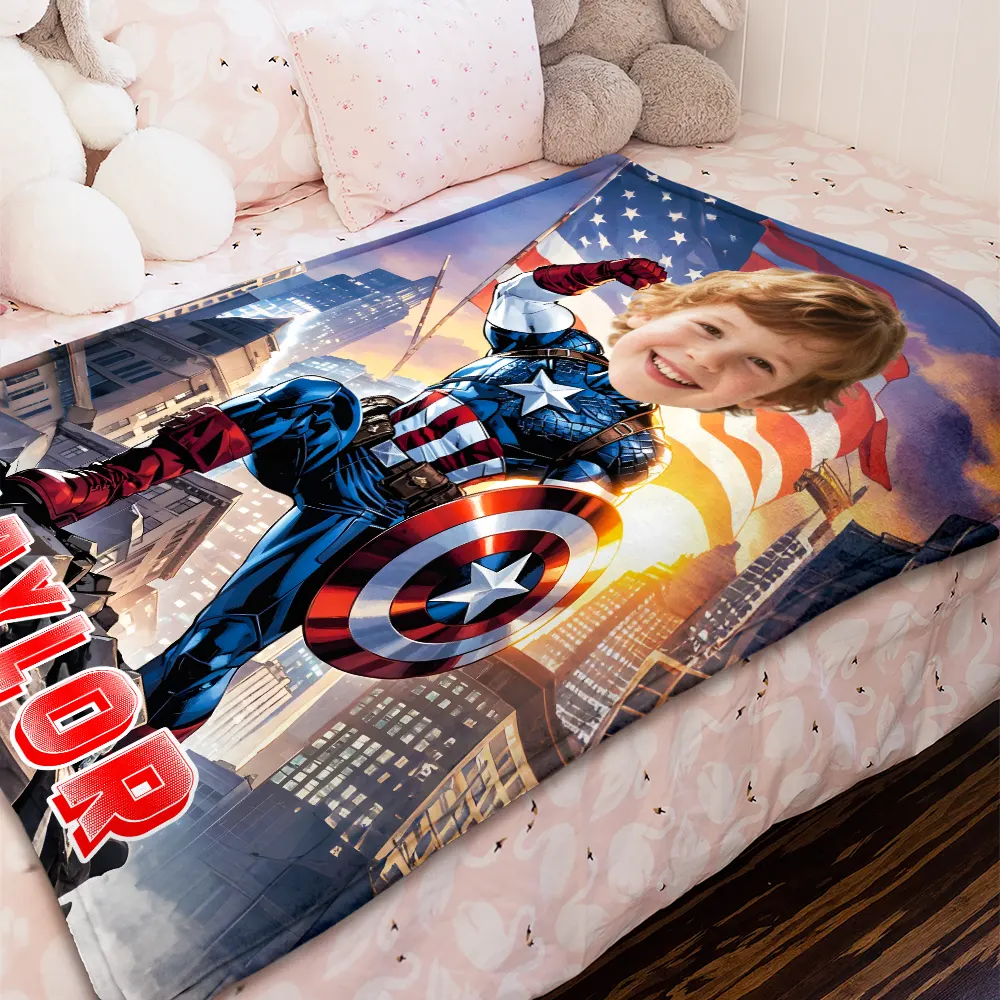 Custom Blanket Patriotic Super Hero Courage Themed Sunset City Hero Style Activity Confidence Building Birthday Gift
