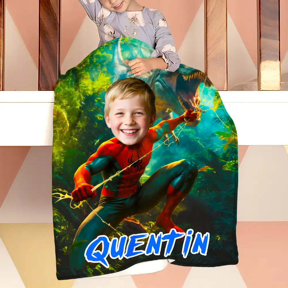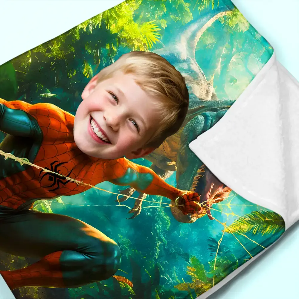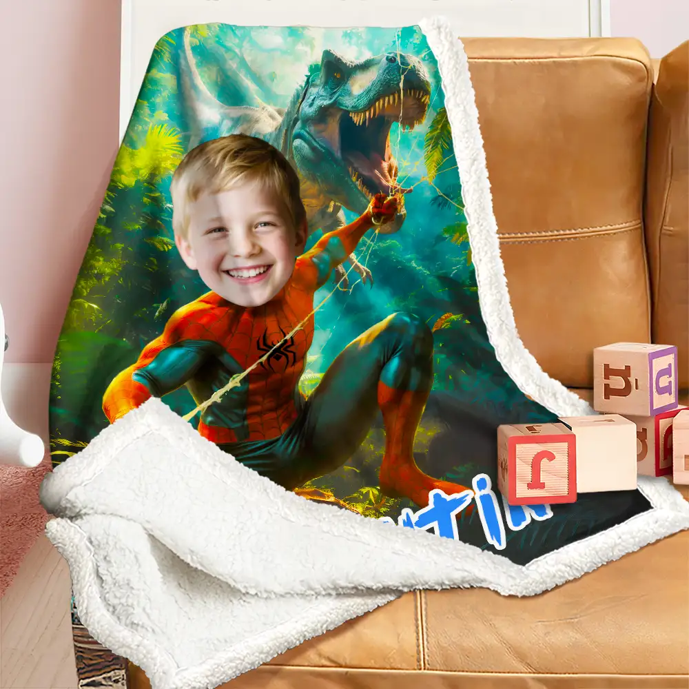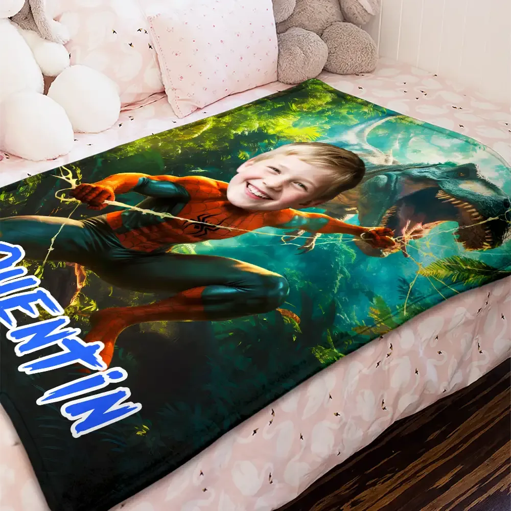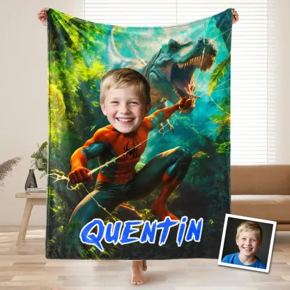 Custom Blanket Superboy Dinosaur Jungle Adventure Children 's Day Gift for Boy