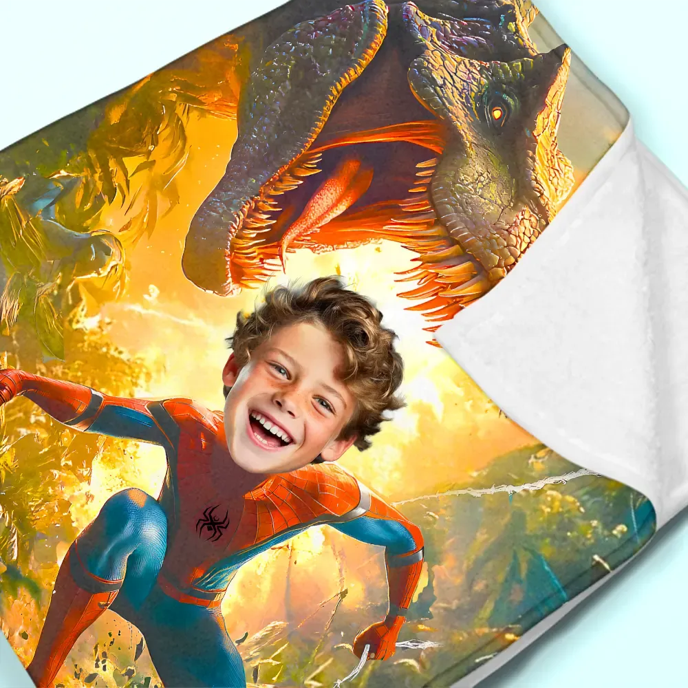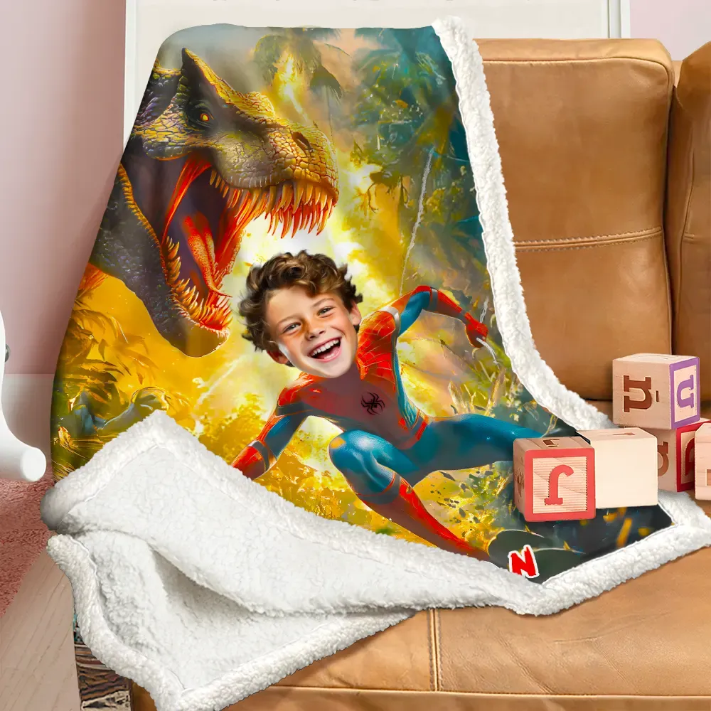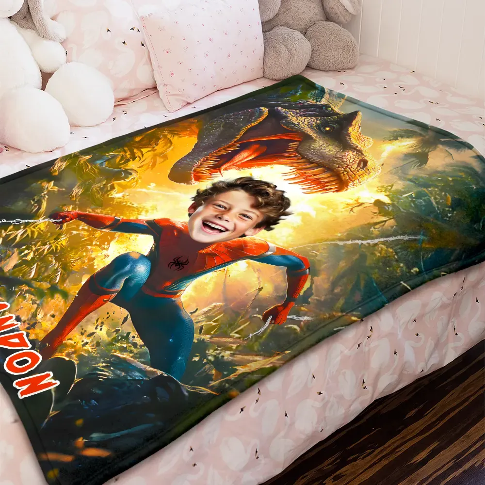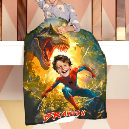 Custom Blanket Super Hero Jungle Scene Green/Yellow Action Pose Keepsake Birthday Gift