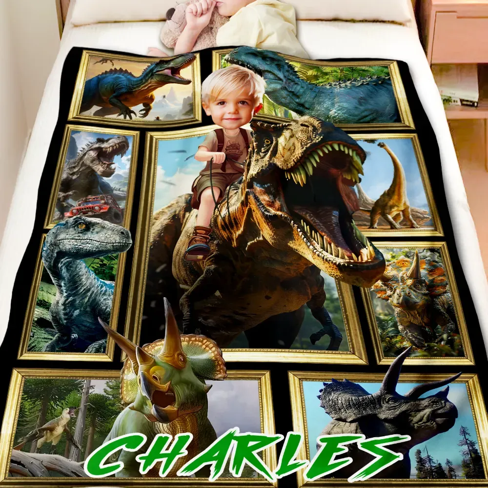 Custom Dinosaur Blankets Personalized Boy Riding Dinosaur Fleece Blanket