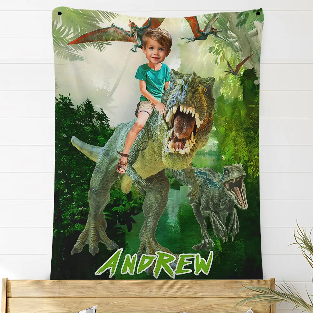 Custom Dinosaur Blankets Personalized Boy Riding Dinosaur Fleece Blanket