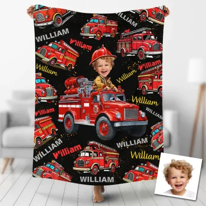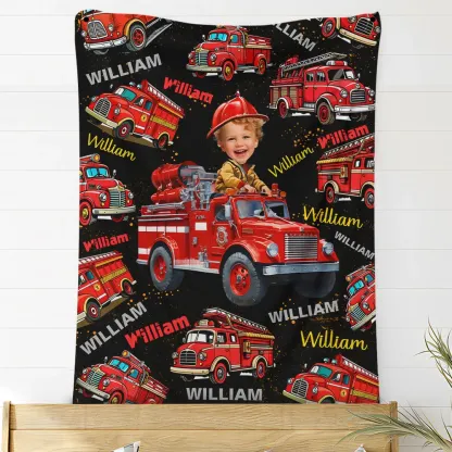 Custom Blankets Personalized Creative Boy Riding Fire Engine Blanket