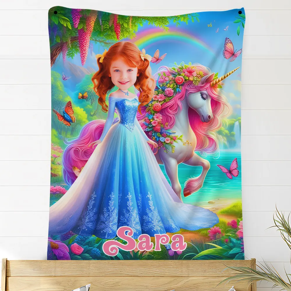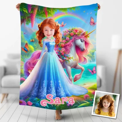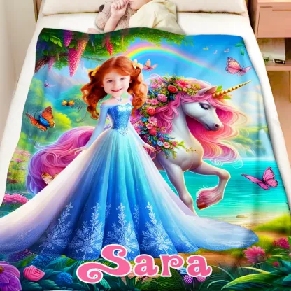 Custom Blankets Personalized Elsa Princess And Unicorn Blanket