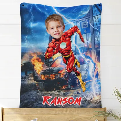 Custom Photo Blankets Personalized Photo Blanket Fleece the Scarlet Speedster, Painting Style