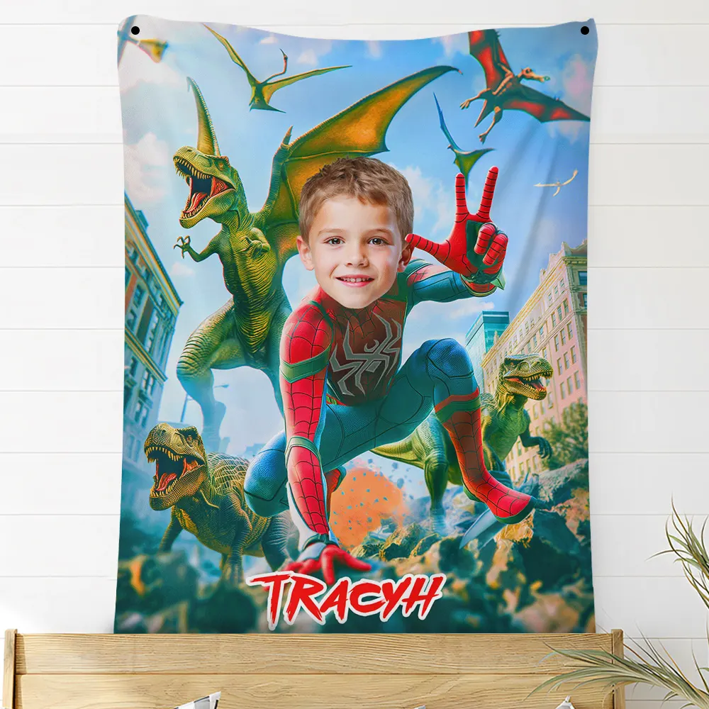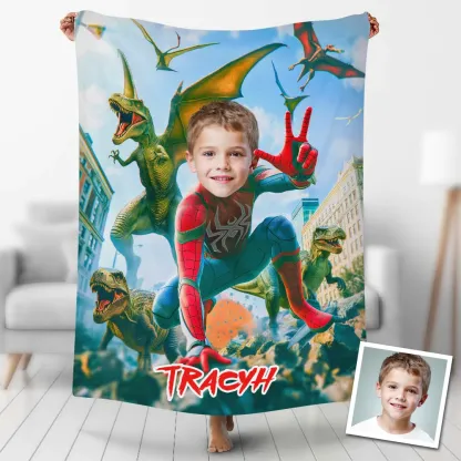 Customized Dinosaur Superhero Blankets Personalized Spider-Man Dinosaur Fleece Blanket