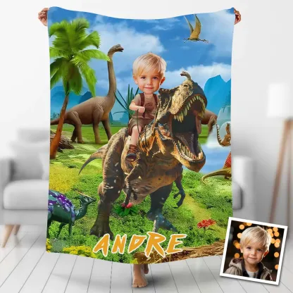 Custom Dinosaur Blankets Personalized Boy Riding Dinosaur Blanket