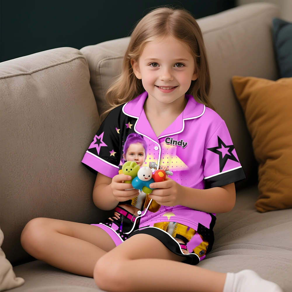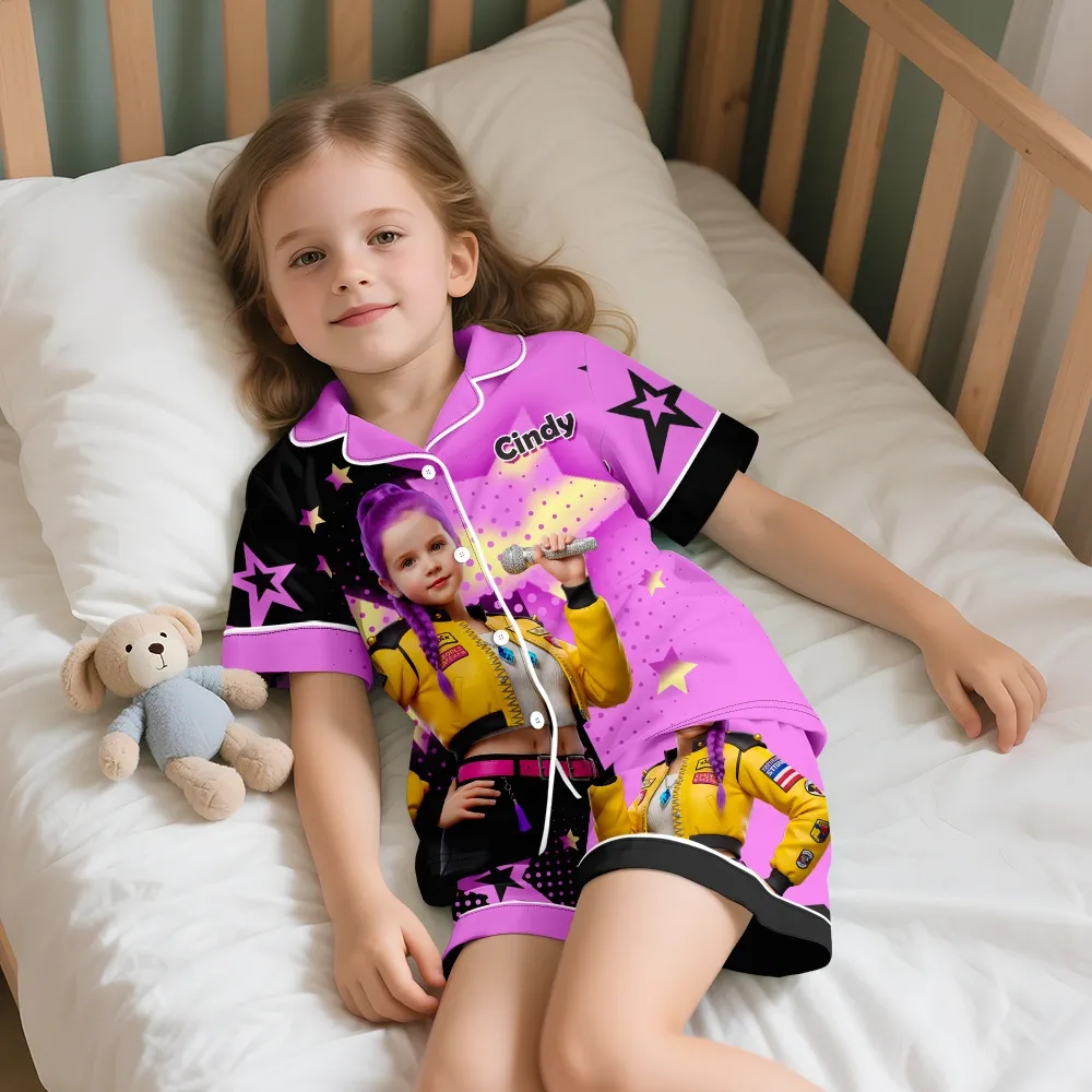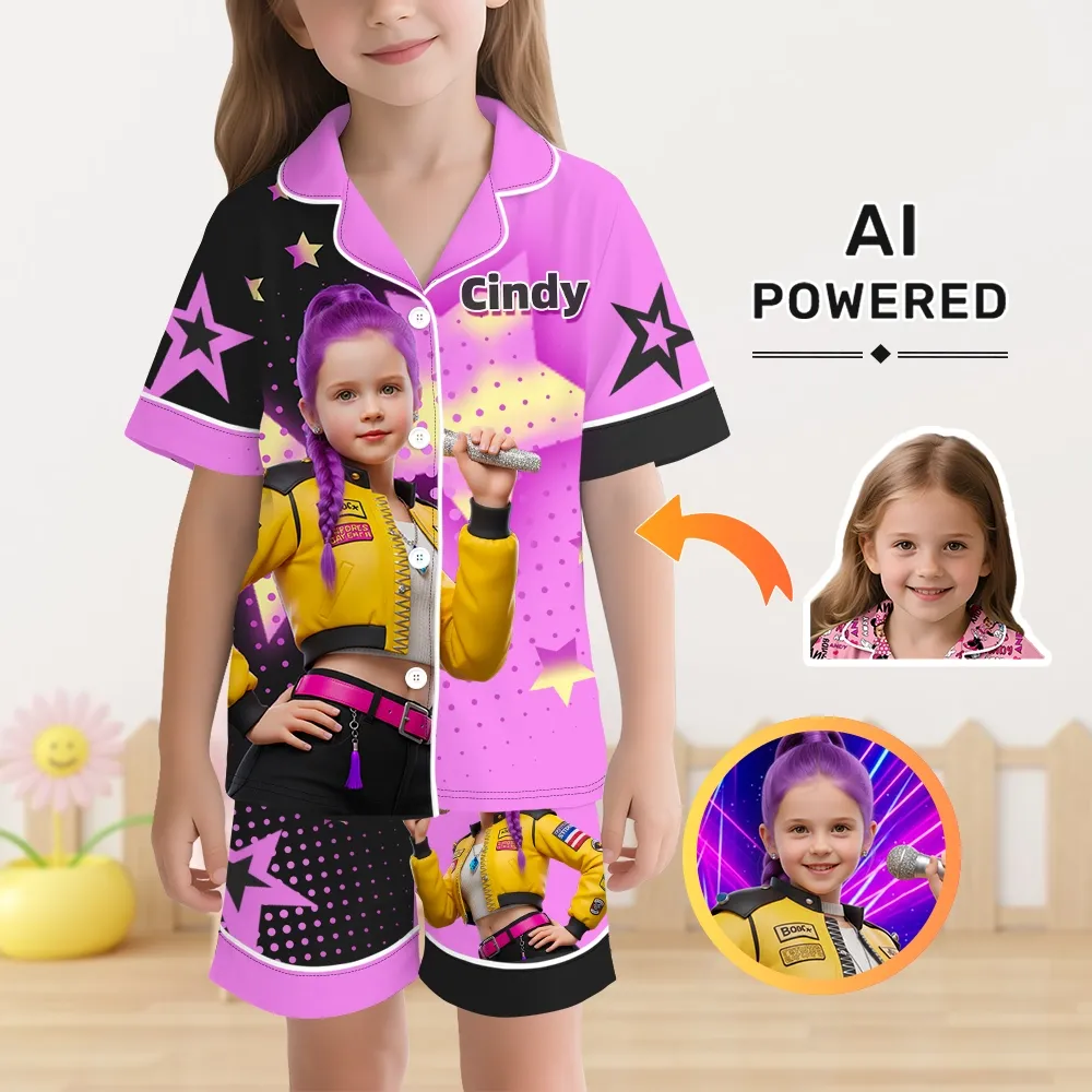 Custom Kid's Short Sleeve Pajamas AI Powered Pop Star Character Children's Day Gift for Girl