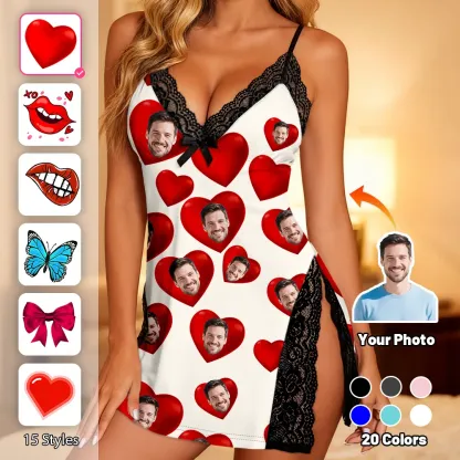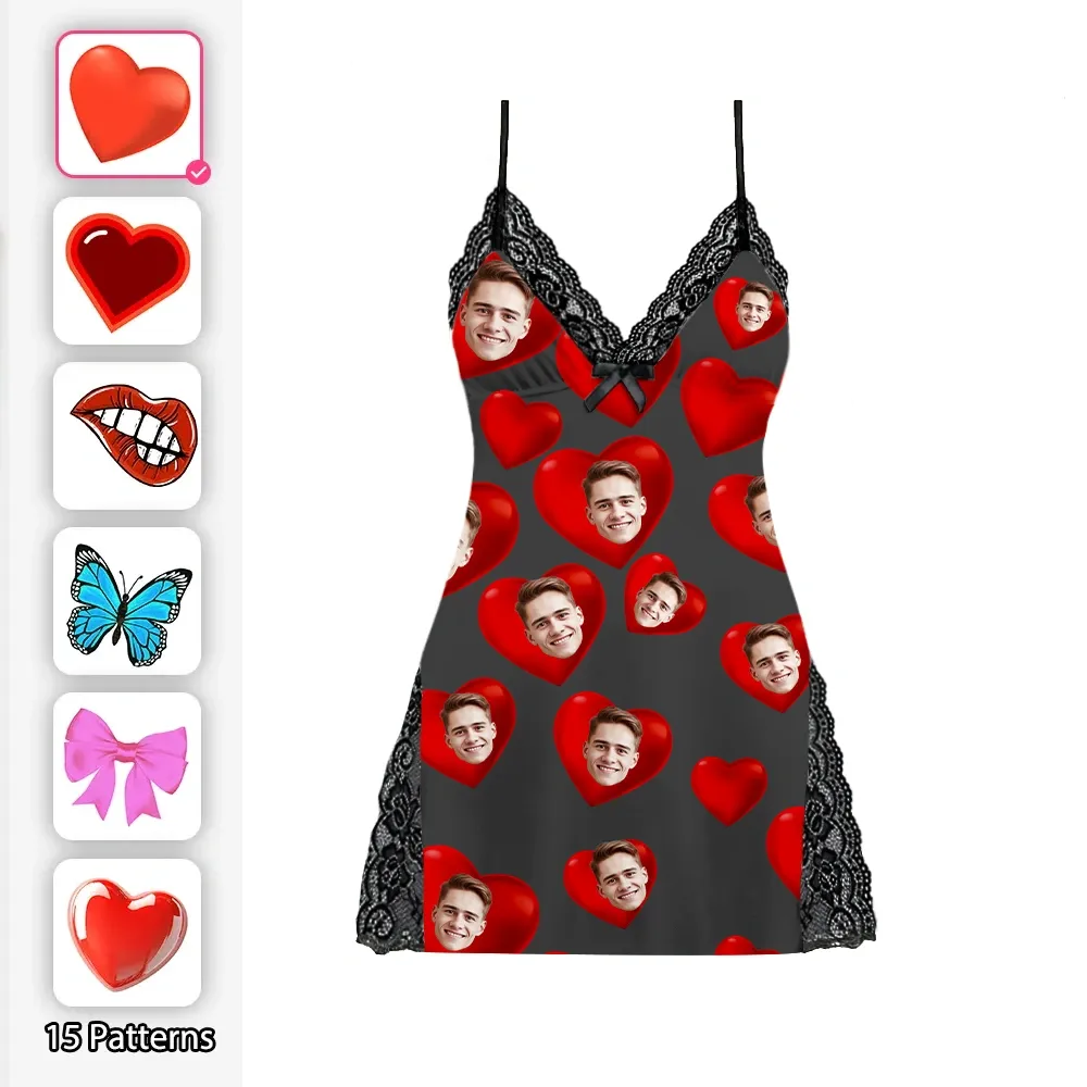 Custom Lace Nightgown White Base Comes with Fun Icons like Lips and Butterflies Valentine's Day Gift for Her