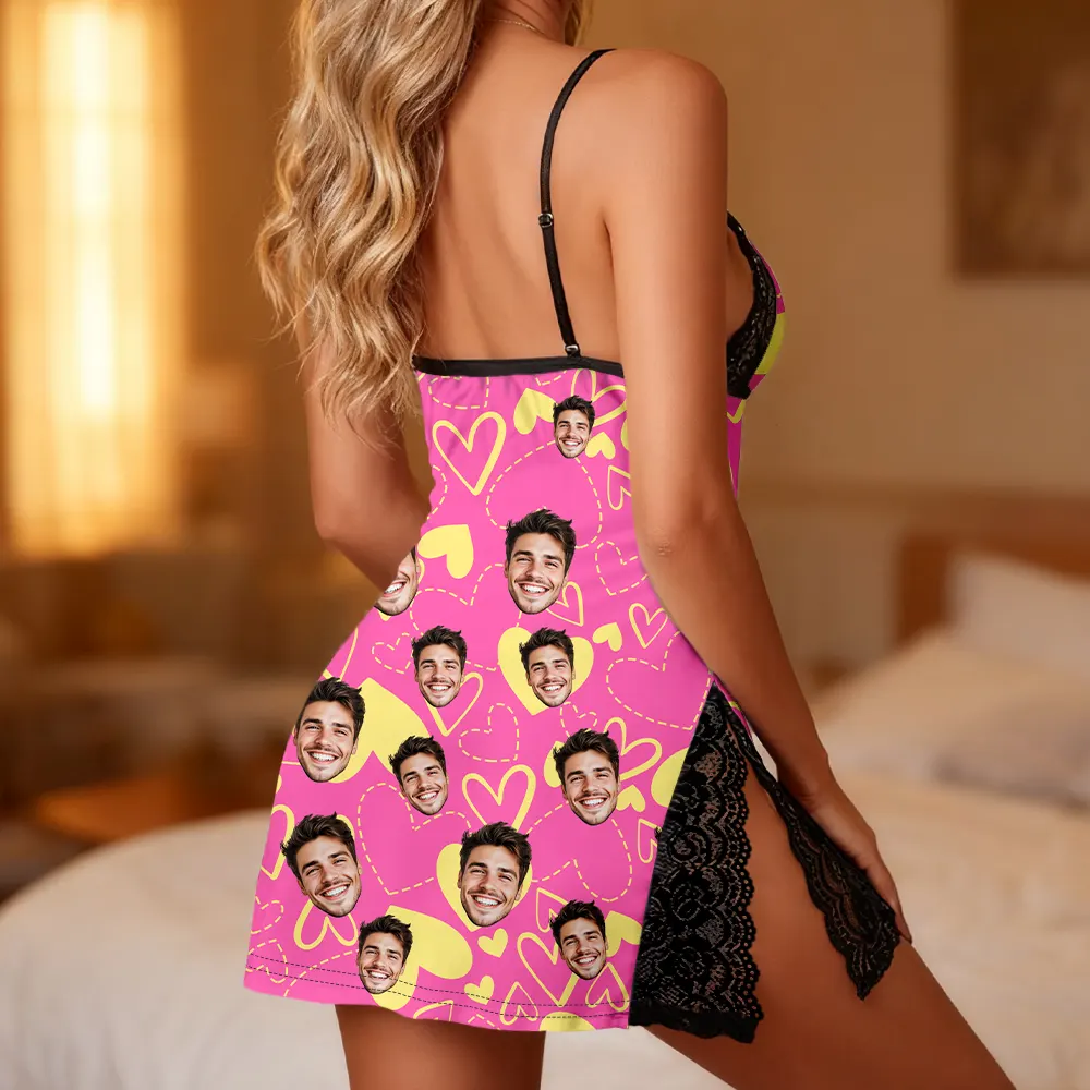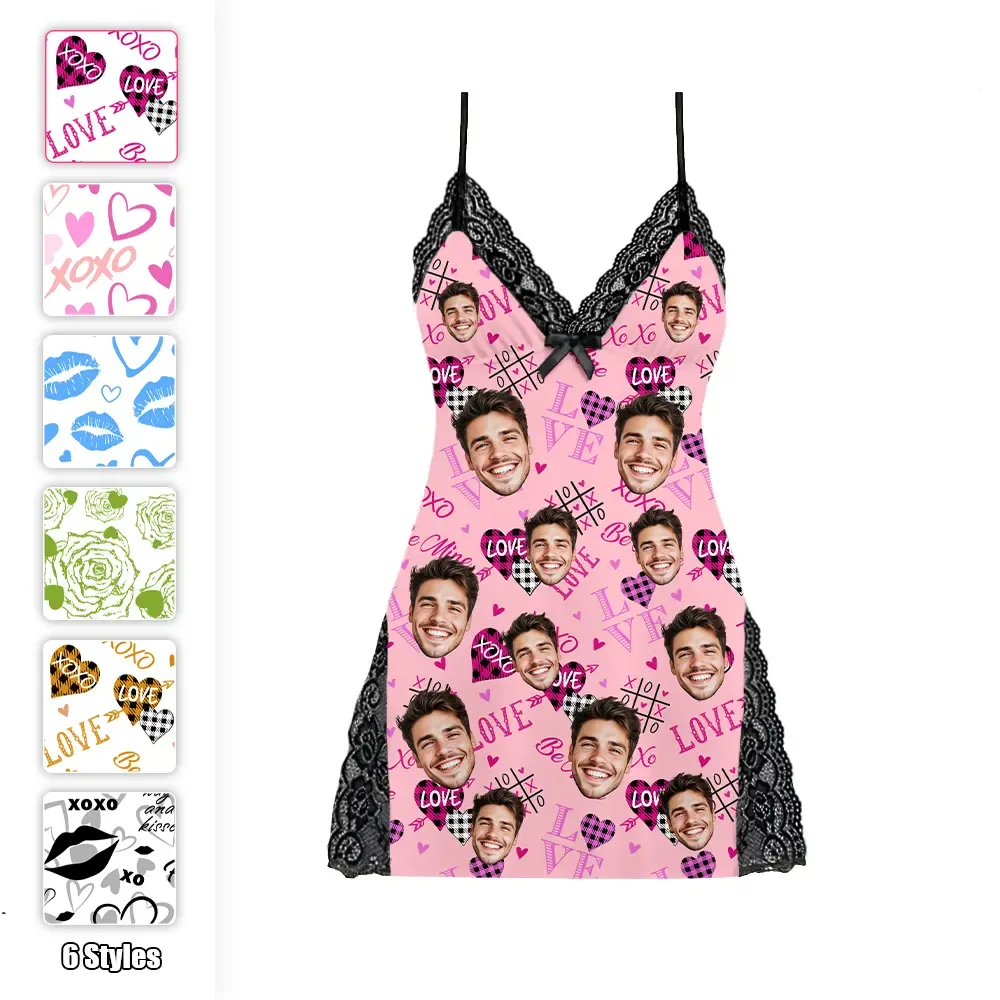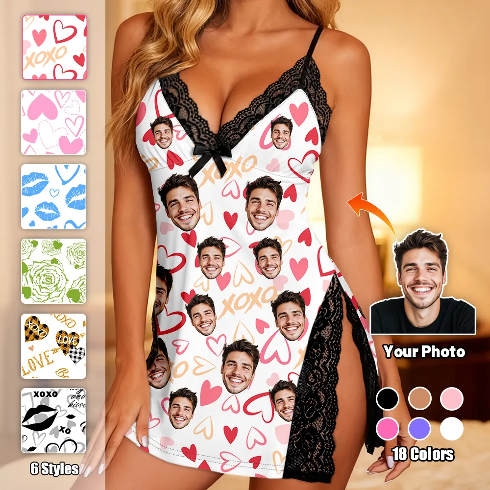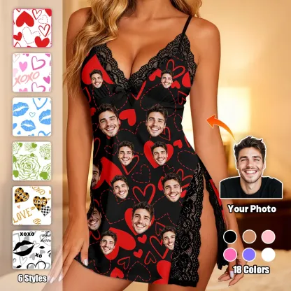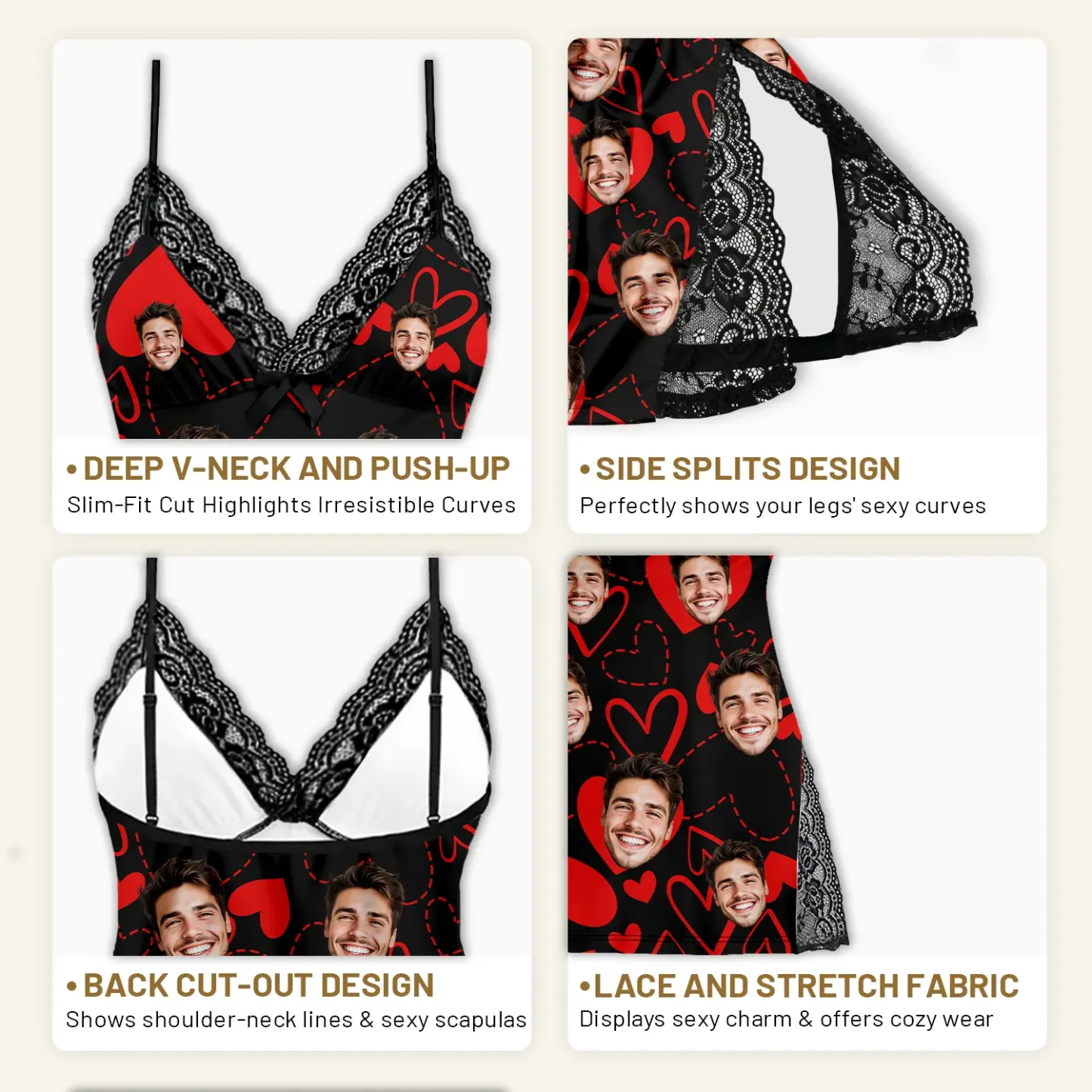 Custom Lace Nightgown With Your Face Red Heart Valentine's Day Gift for Her