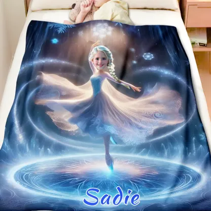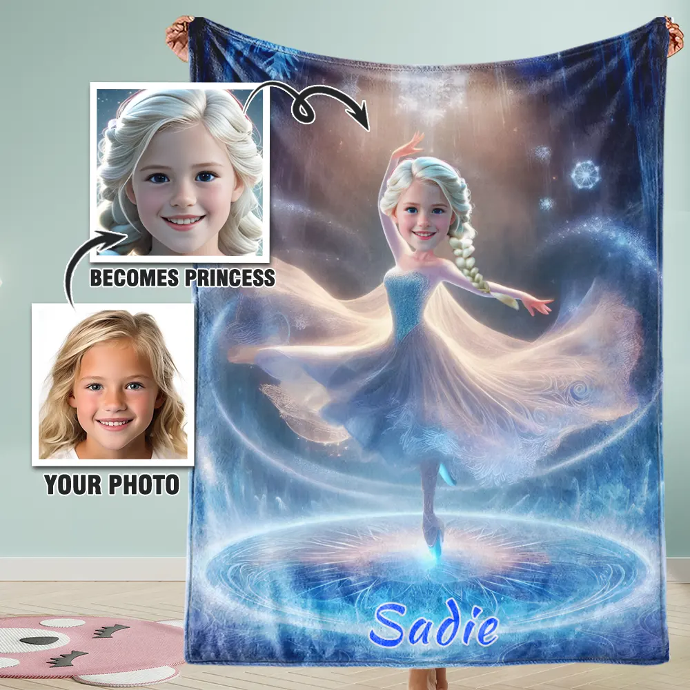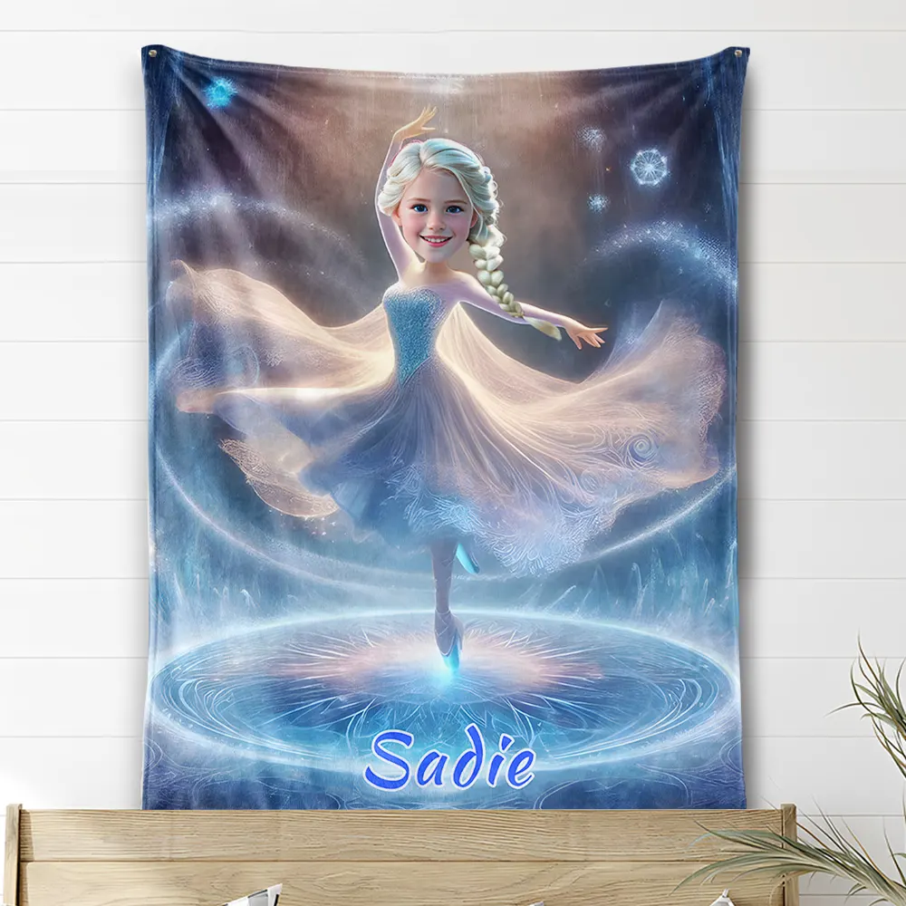 Custom Photo Blankets AI-Powered 3D Princess Ballet in Glacial Glow Personalized Princess With Your Photo