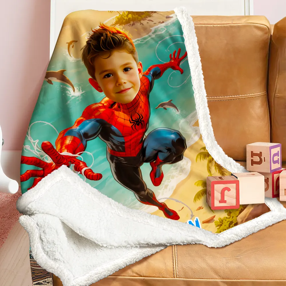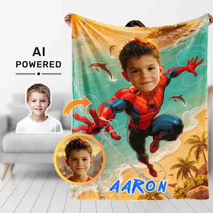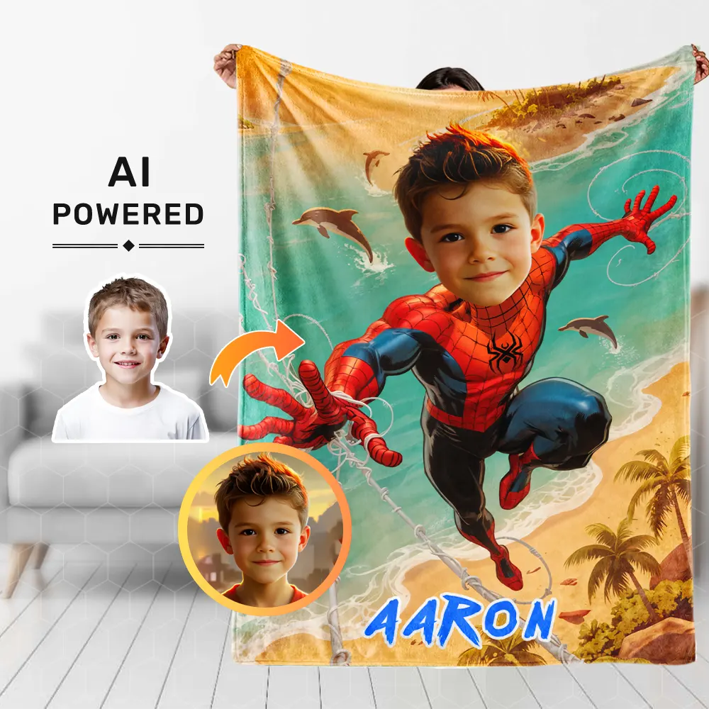Custom Photo Blankets AI-Powered 3D Spiderboy Personalized Spiderboy With Your Photo
