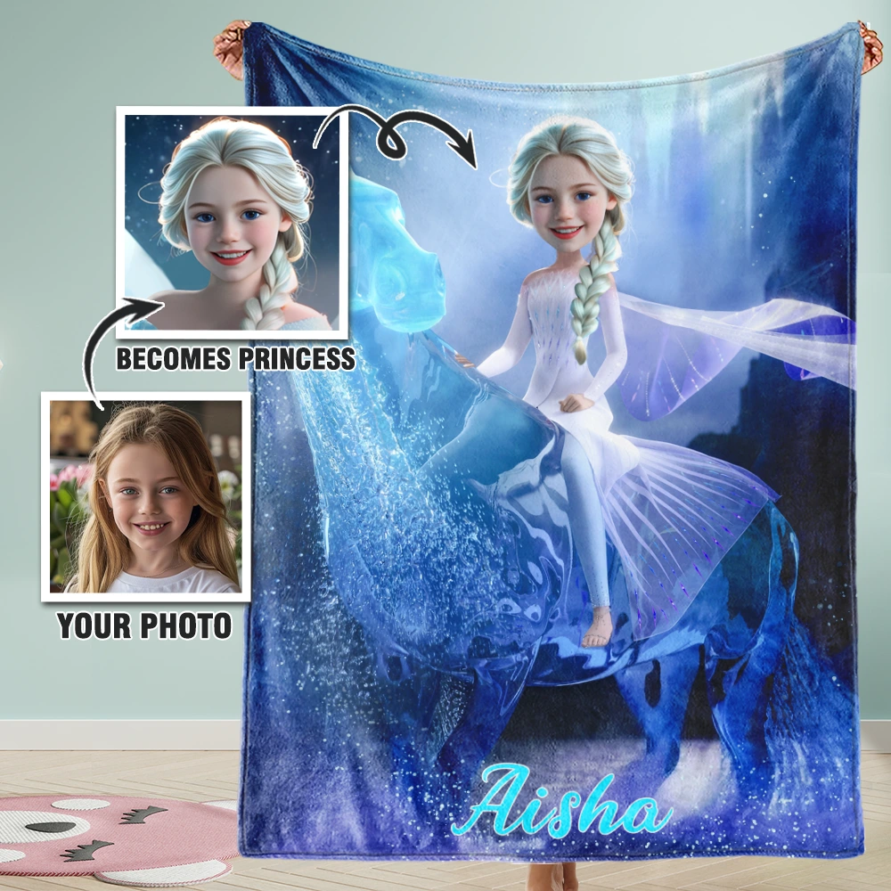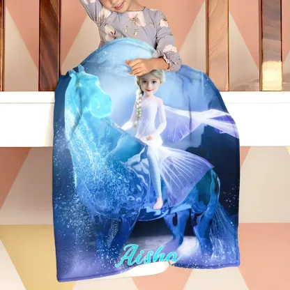 Custom Photo Blankets AI-Powered 3D Princess Riding Horse Personalized Princess with Your Photo