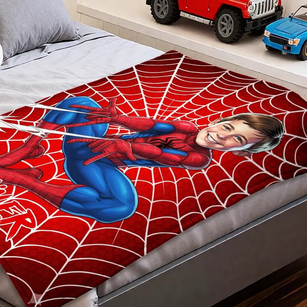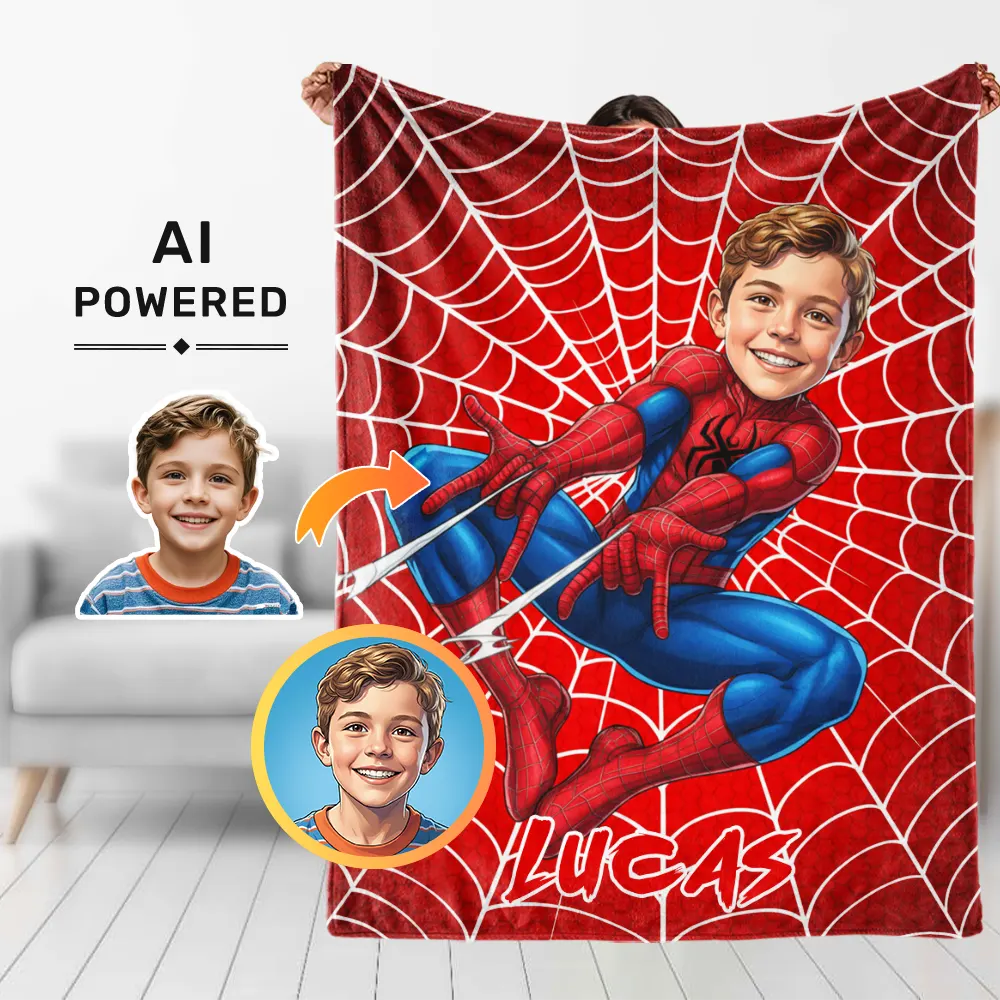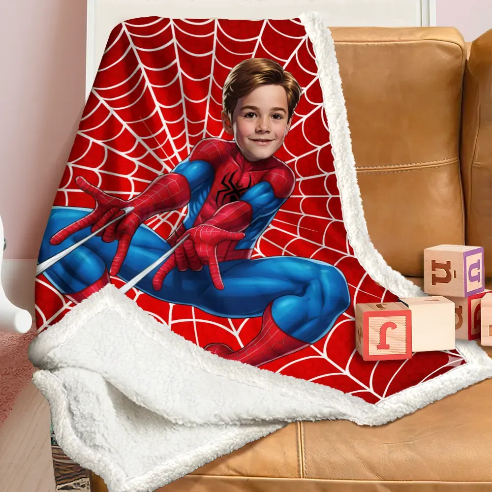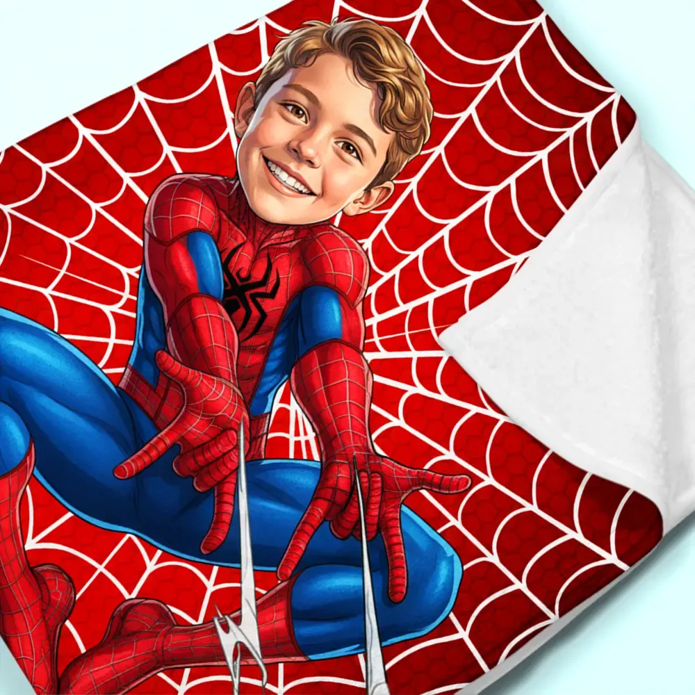 Custom Superhero Blanket AI Powered Superboy Dynamic Web-Shooting Pose Gift for Boy