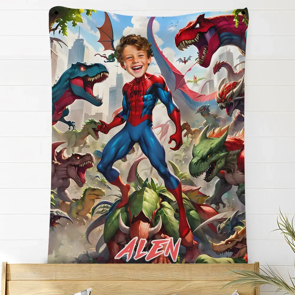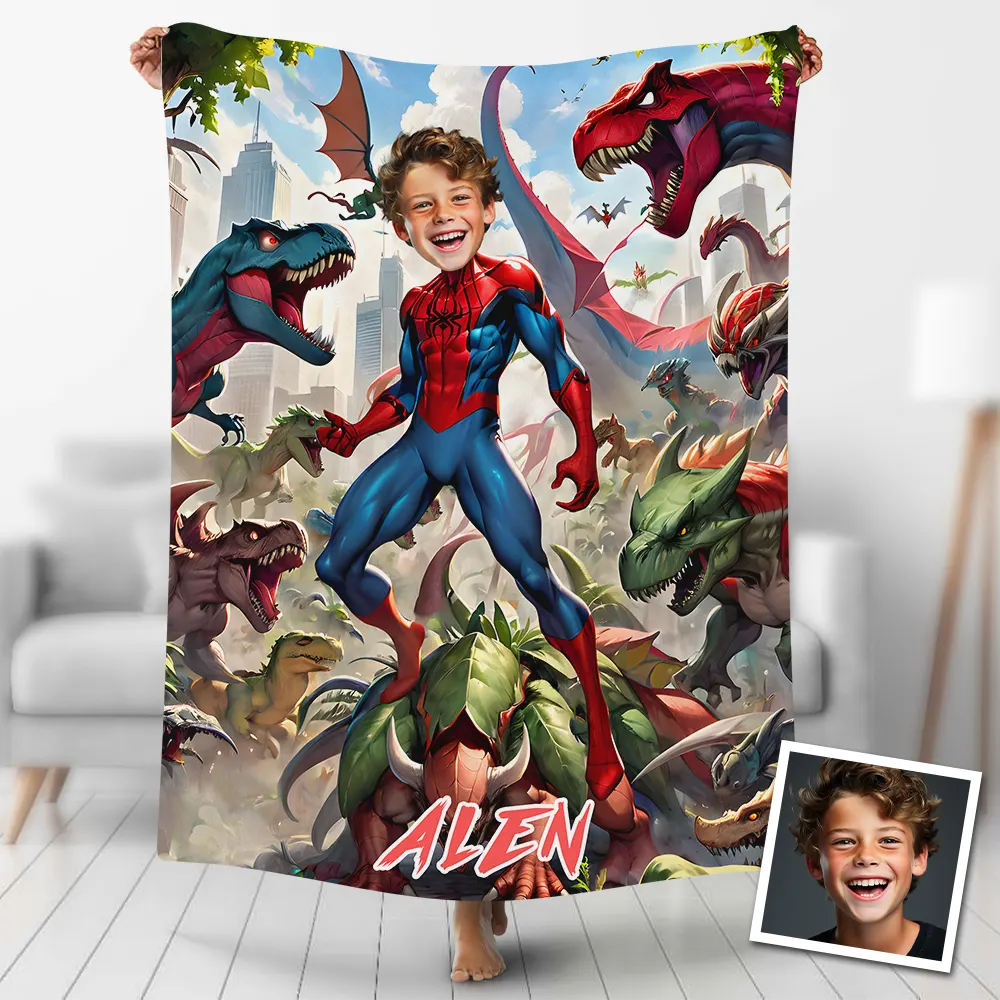 Customized Dinosaur Superhero Blankets Personalized Spiderman Dinosaur Superhero Fleece Blanket
